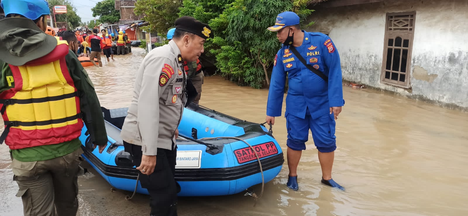 Bencana alam terparah terjadi di wilayah Kota Serang, sehingga Dirpamobvit Polda Banten langsung menerjunkan personelnya untuk memberikan bantuan kepada masyarakat yang terdampak bencana banjir.