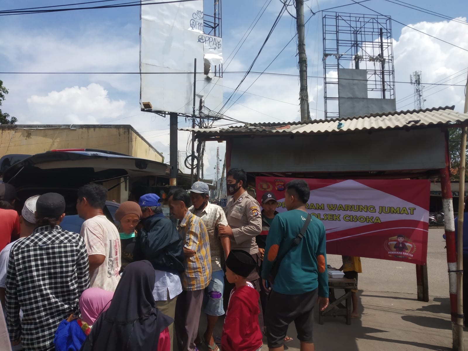 Dijelaskan oleh Kaposlek Cisoka Polresta Tangerang Polda Banten, mengatakan ini Kegiatan yang di pimpin oleh Personil Polsek Cisoka melaksanakan program Kapolda Banten “Warung Jumat” dengan membagikan makanan kepada warga desa Cisoka kecamatan. Cisoka Kabupaten Tangerang dan para tukang ojeg dengan tujuan untuk membantu masyarakat di wilkum Polsek Cisoka