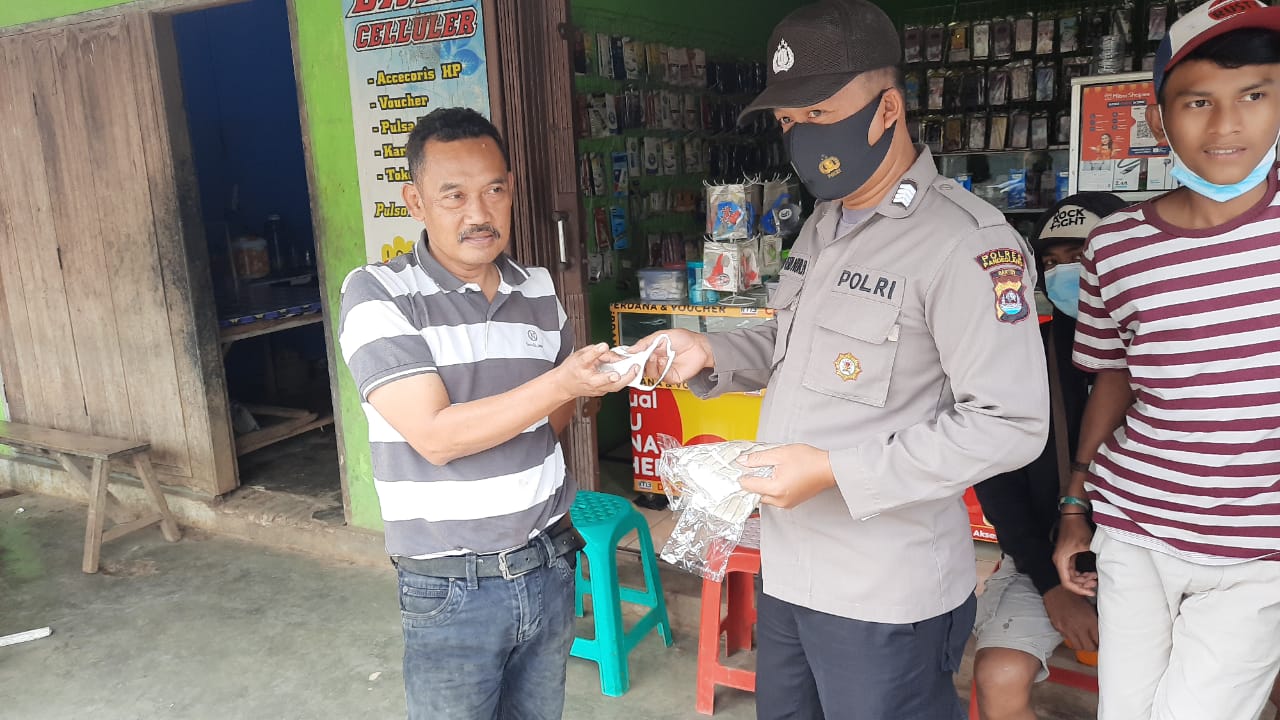 Baraknews Bojong, Pandeglang – Kapolsek Bojong Polres Pandeglang AKP H. SUKARMAN Bersama Personil membagikan Masker Gratis kepada Masyarakat sebagai upaya Pencegahan Penyebaran Covid – 19 di Wilayah Hukum Polsek Bojong Polres Pandeglang, Selasa ( 08/03/2022 ).