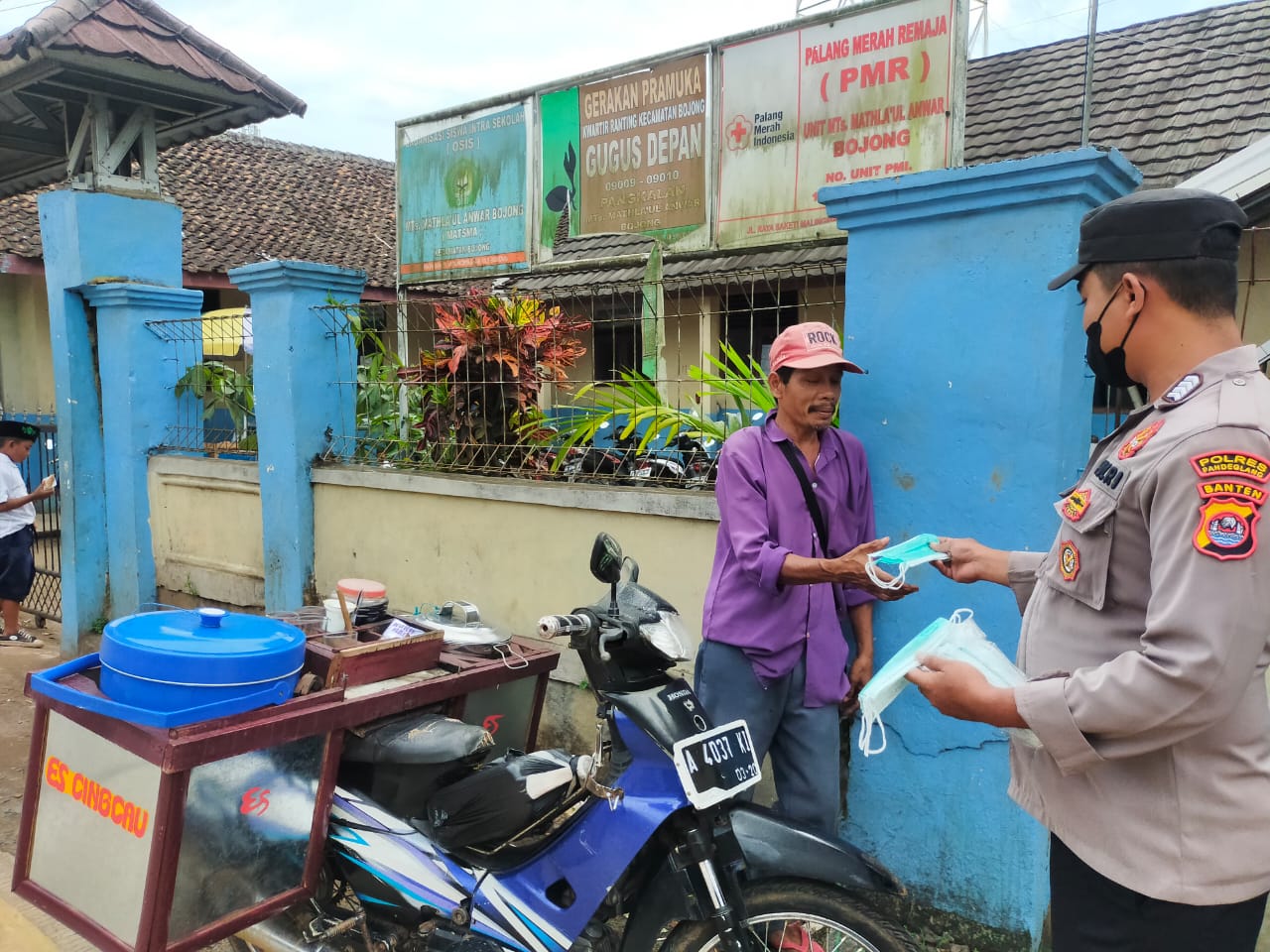Baraknews Pandeglang – Kapolsek Bojong Polres Pandeglang AKP H. SUKARMAN Bersama Personil membagikan Masker Gratis kepada Masyarakat sebagai upaya Pencegahan Penyebaran Covid – 19 di Wilayah Hukum Polsek Bojong Polres Pandeglang, Minggu ( 15/05/2022 ).