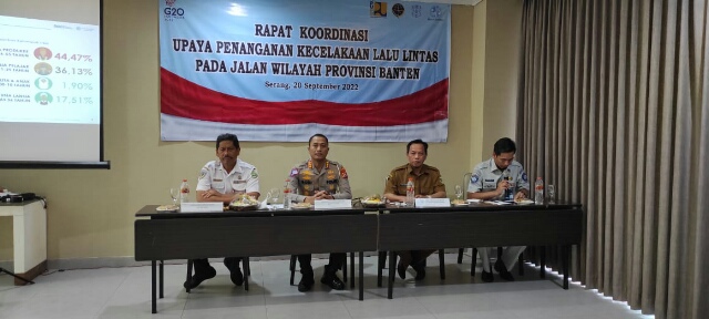 Rakor tersebut juga dihadiri oleh Dirlantas Polda Banten Kombes Pol Budi Mulyanto, Kadis Perhubungan Provinsi Banten Tri Nurtopo, Kepala PT. Jasa Raharja Cabang Banten Saldhy Putranto, dari BPTD Provinsi Banten, Dinas PUPR Provinsi Banten dan para Kasat Lantas Polres/Ta jajaran Polda Banten.