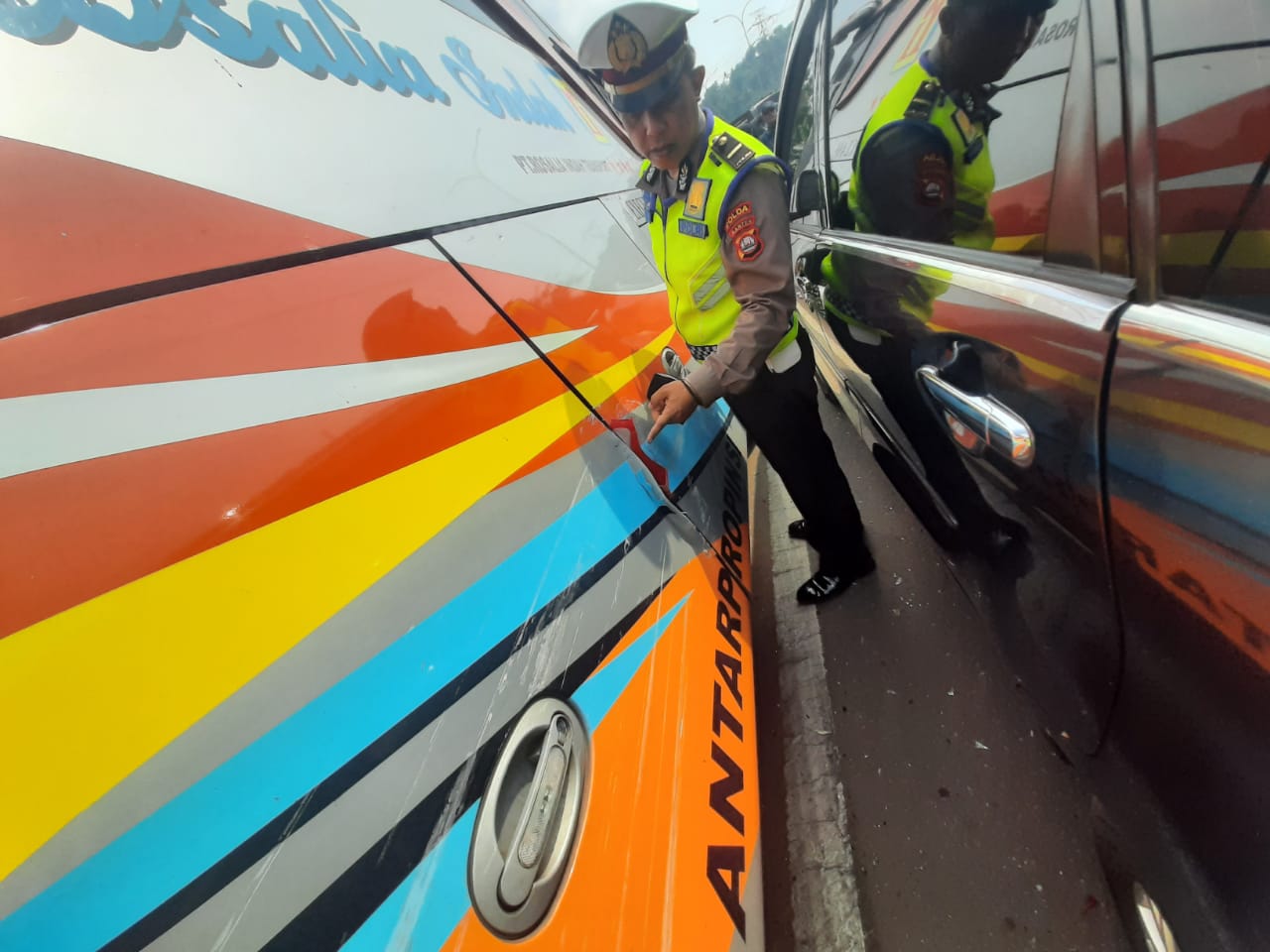 Sebuah bus menabrak tiga kendaraan yang sedang berhenti karena ada antrian kendaraan. “Ada empat kendaraan yang terlibat dalam kecelakaan beruntun ini kendaraan Bus Rosalia Nopol AD-7191-OF supir SY, kendaraan Daihatsu Luxio Nopol B-1548-POV supir AS, kendaran Daihatsu Xenia Nopol B-1896-FKT supir HS, dan kendaraan Daihatsu Xenia Nopol F-1248-HT supir AG,” kata Dirlantas Polda Banten Kombes Pol Budi Mulyanto.