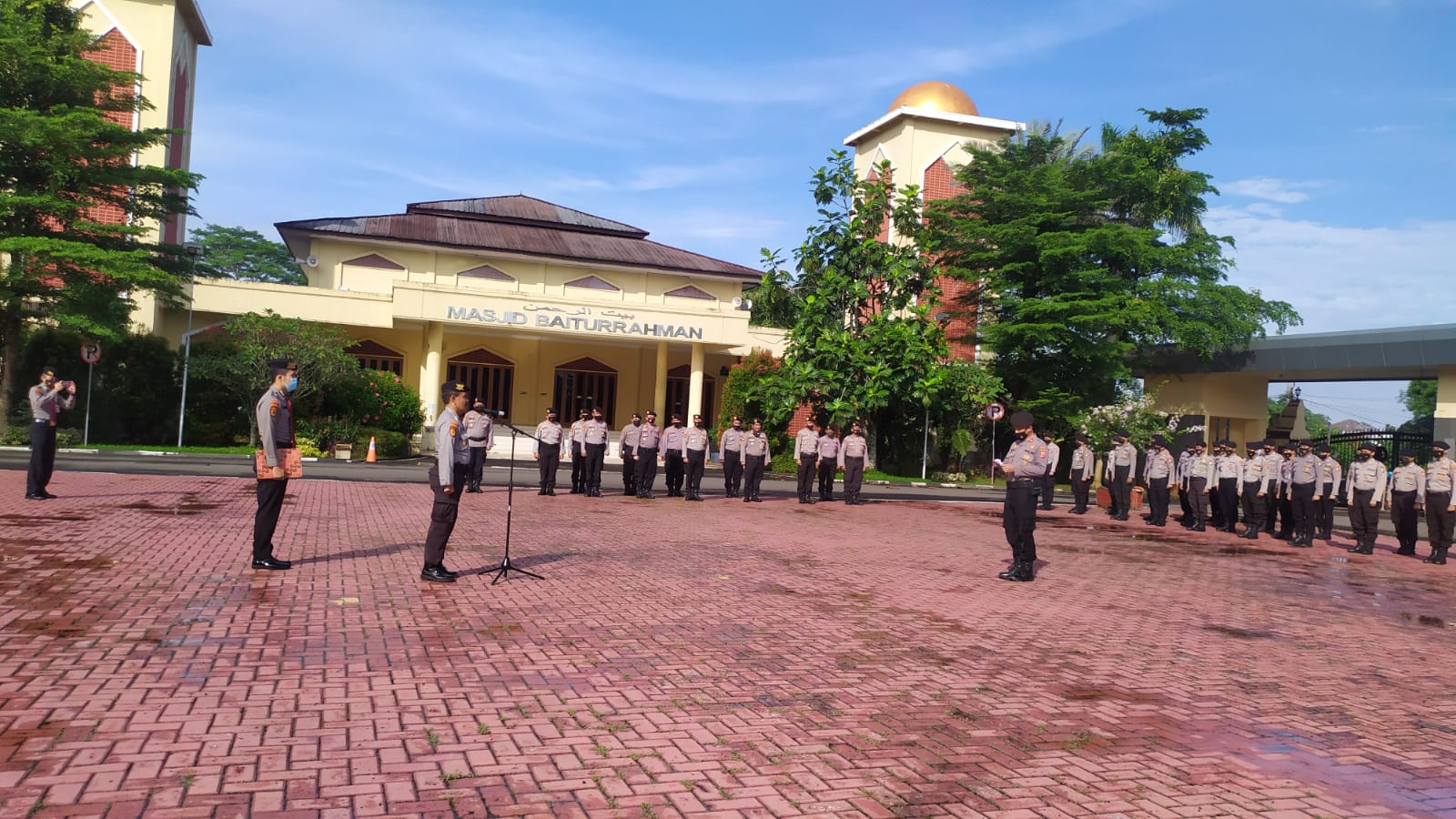 Baraknews Serang – Dalam rangka pergeseran pasukan personel yang akan melaksanakan dinas luar di wilayah hukum polda banten personel ditpolairud polda banten ikut menghadiri apel pagi tadi di Mapolda Banten pada Rabu (01/06)