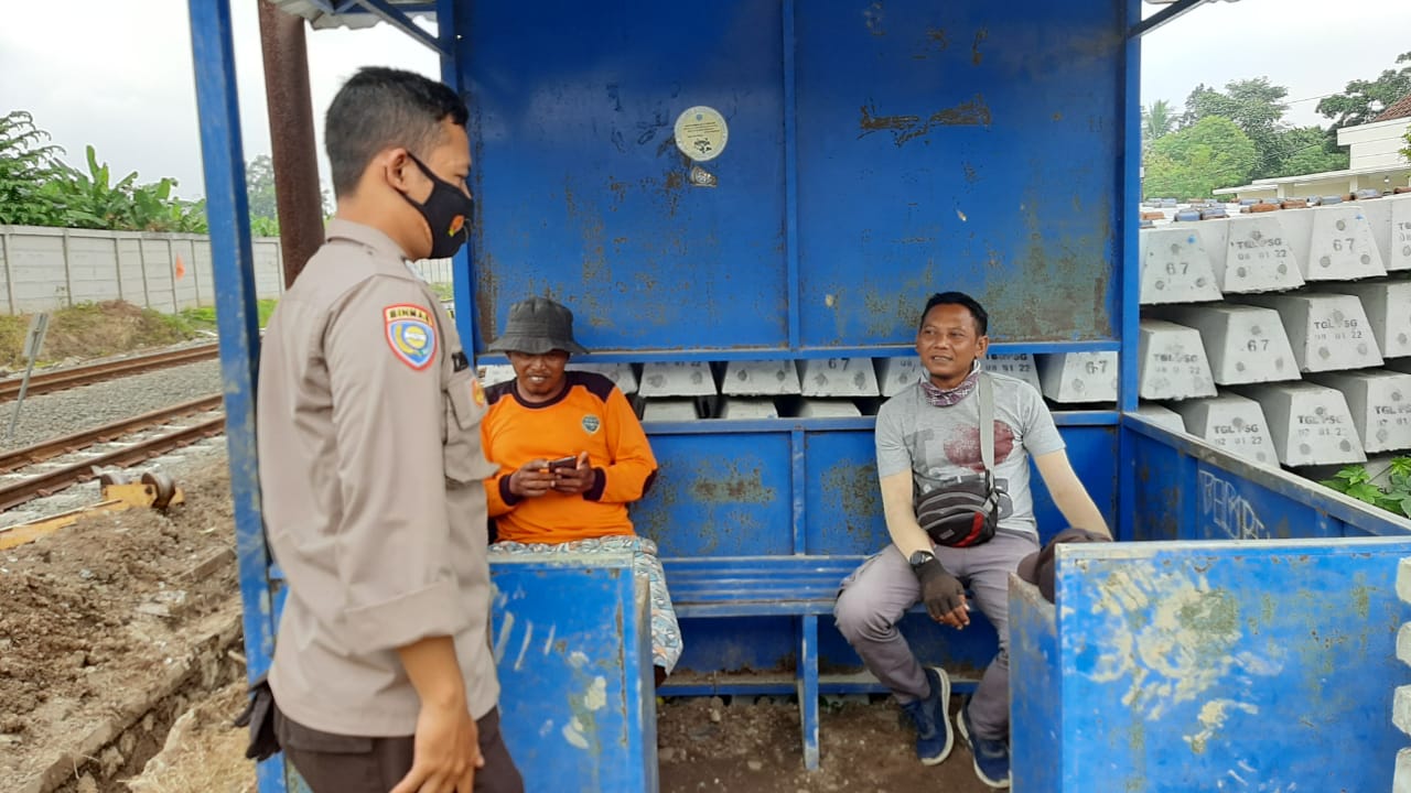 Pada kesempatan tersebut pqk Bahabin melaksanakan patroli dialogis sambil Berbincang santai dengan pemjaga perlintasan dan menyampaikan kepada warga agar tetap menerapkan Protokol kesehatan dalam aktifitas sehari-hari demi terhindar dari Covid-19.