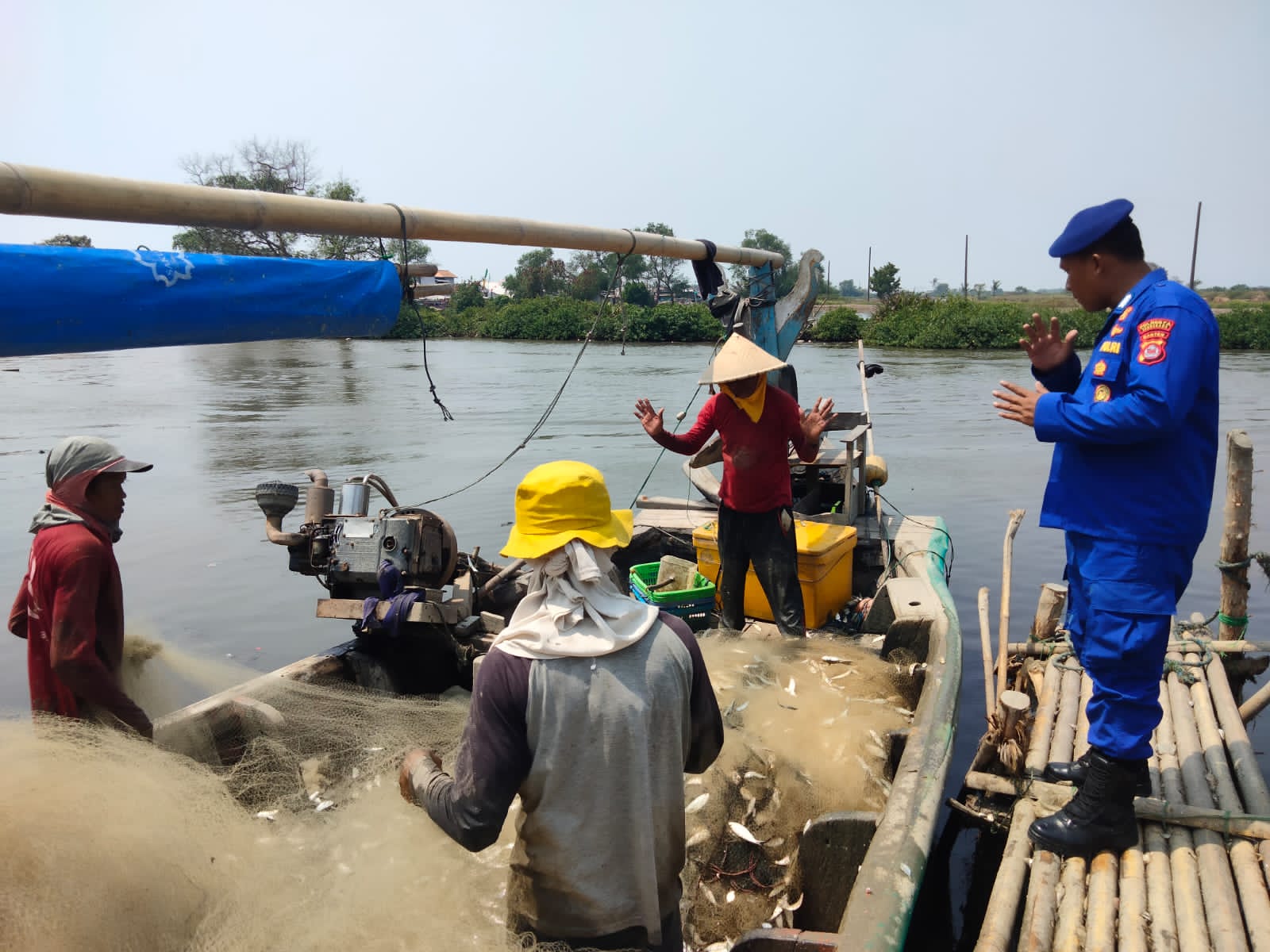 Tangerang – Personel Satuan Polairud Polresta Tangerang melaksakan Kegiatan Polmas perairan Kepada nelayan di Daerah Pesisir Kabupaten Tangerang. Kegiatan Polmas perairan di laksanakan oleh Anggota Sat Polairud Polresta Tangerang.