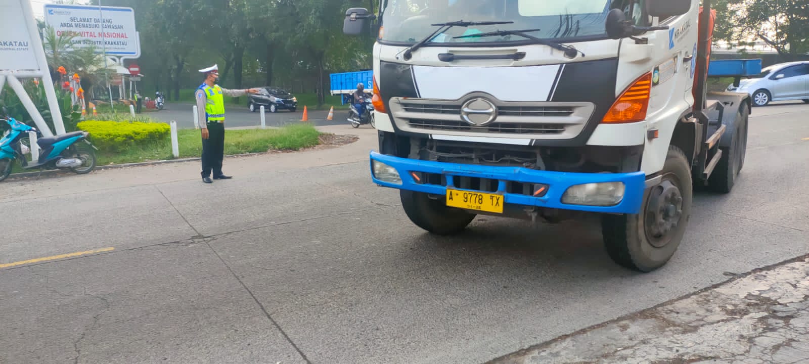 Baraknews Polsek Ciwandan Polres Cilegon Polda Banten- Sebagai Bukti Pelayanan Kepada Masyarakat Personel Polsek Ciwandan Polres Cilegon melaksanakan pengaturan lalu lintas di Simpang Beringin Kelurahan Warnasari Kecamatan Citangkil Kota Cilegon, Jum’at (29/07/2022).