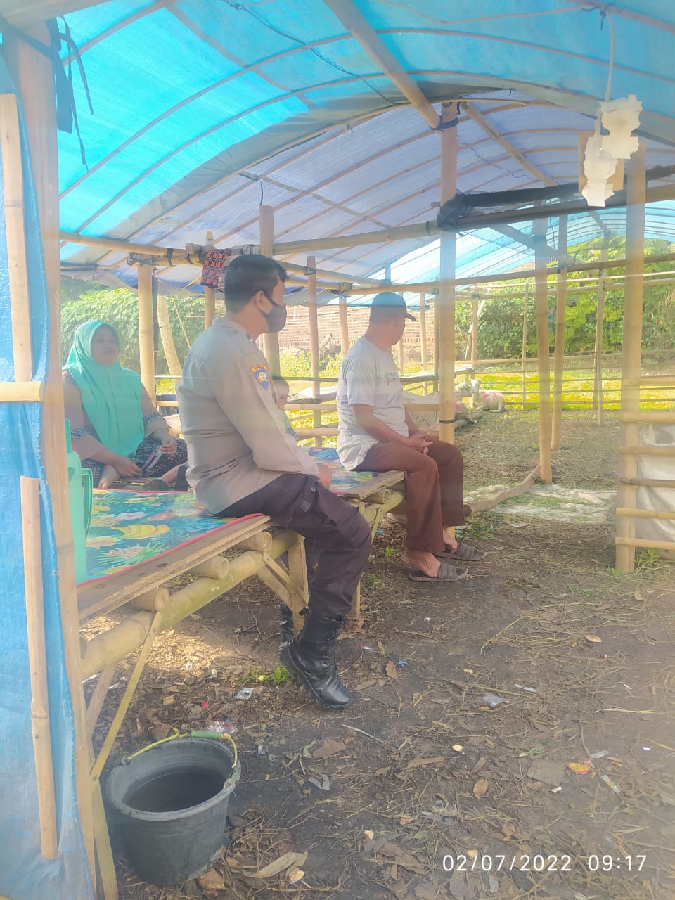 Baraknews Polsek Cinangka Polres Cilegon Polda Banten ~ Dalam mengantisipasi wabah Penyakit Mulut dan Kuku (PMK) pada hewan ternak, jajaran personel Bhabinkamtibmas Polsek Cinangka Polres Cilegon Polda Banten, sambangi kandang ternak milik warga masyarakat di Desa binaan guna mengingatkan kebersihan kandang dan kesehatan ternak. Sabtu (02/07/2022).