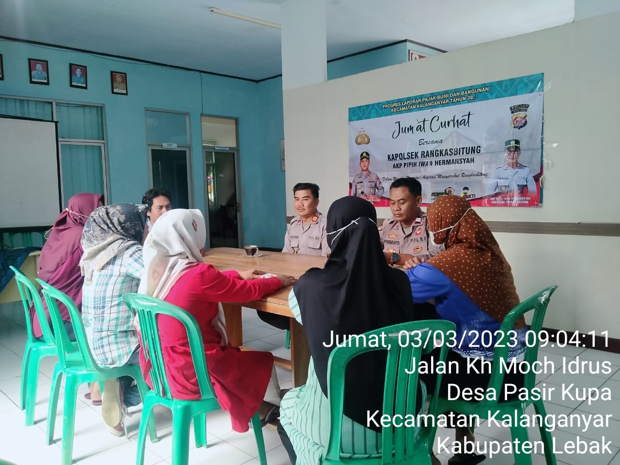“Ya,Kami dari Polsek Rangkasbitung bersama anggota Polsek Rangkasbitung, melaksanakan kegiatan Program Quick Wins Presisi Kapolri yaitu”Jumat Curhat” bersama staf Kecamatan Kalanganyar dan perwakilan dari warga masyarakat sekitar,perlu kami sampaikan bahwa kegiatan ini bertujuan untuk lebih mendekatkan Polri dengan masyarakat, khususnya jajaran Polsek Rangkasbitung Polres Lebak.
