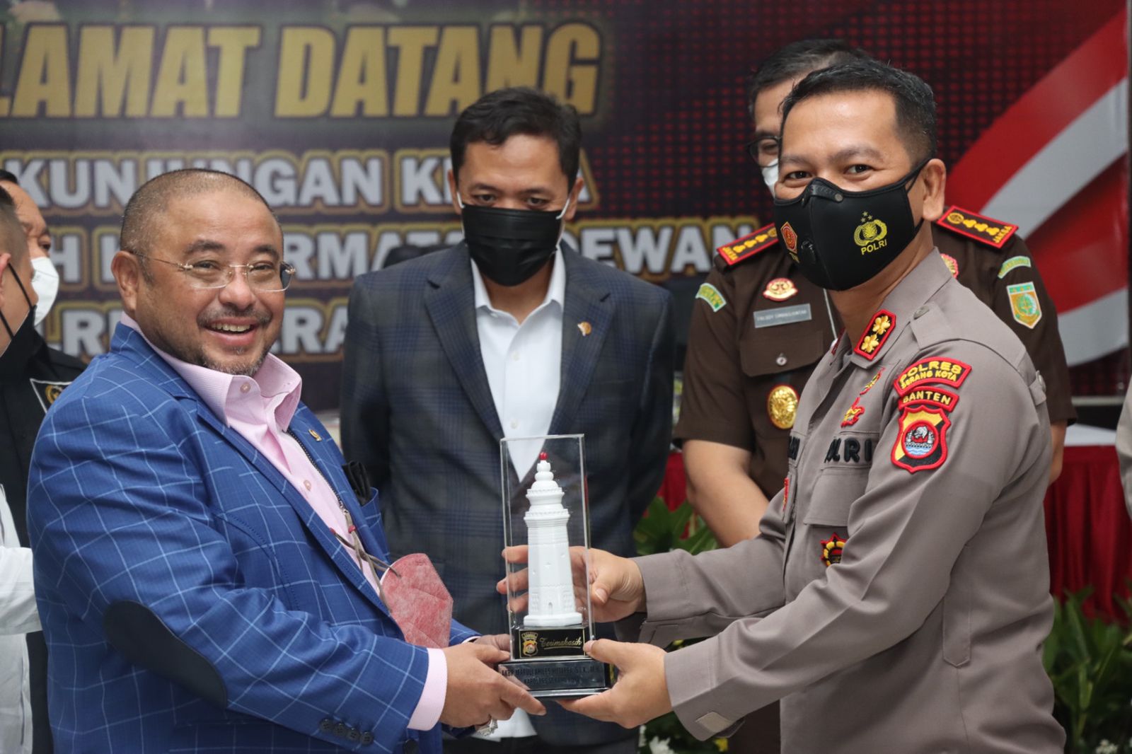 Diakhir, Kapolres Serang Kota menyerahkan cinderamata berupa plakat kepada Ketua MKD sebagai bentuk apresiasi terhadap kunjungan kerja yang dilakukan oleh MKD ke Polres Serang Kota.