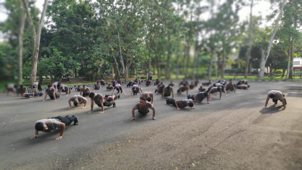 Pembinaan fisik pagi diawali dengan pemanasan yang dipimpin langsung oleh Ipda Turip kemudian dilanjutkan dengan kegiatan Binsik lari sore mengelilingi Polda Banten.