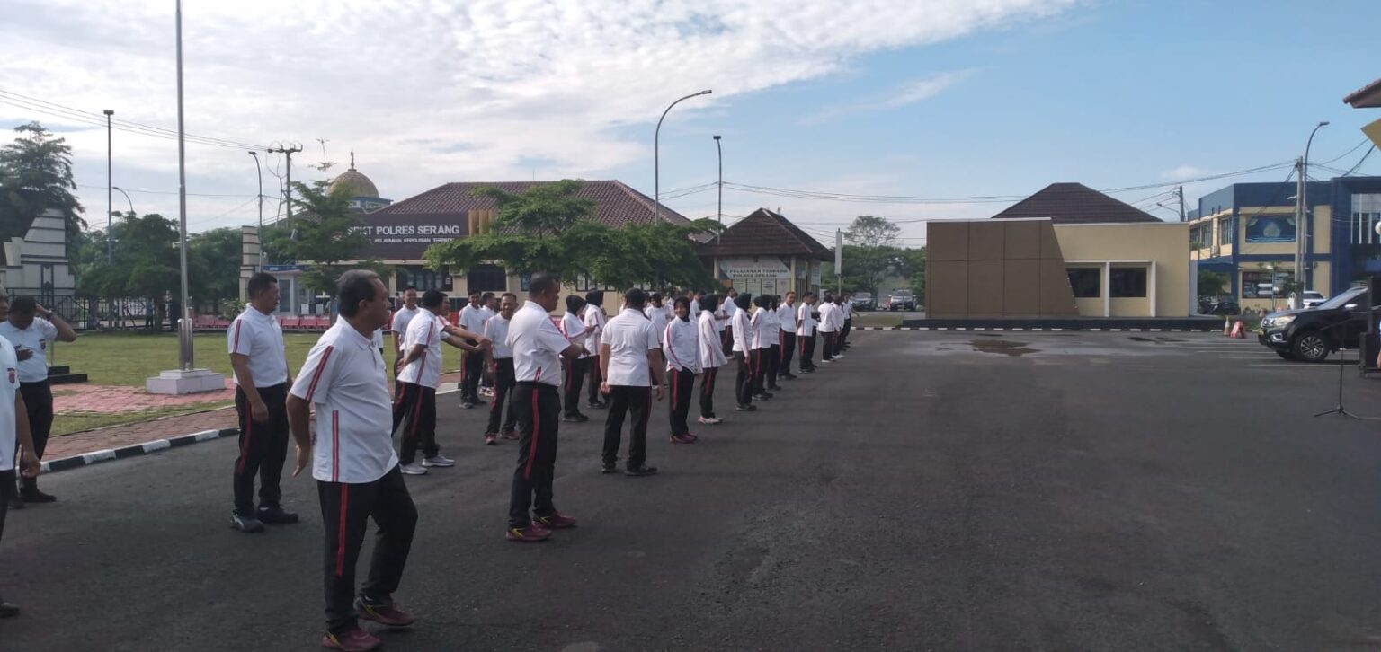 Jaga Kebugaran Tubuh Personel,Polres Serang Gelar Olah Raga Senam Bersama di Halaman Mako Polres Serang