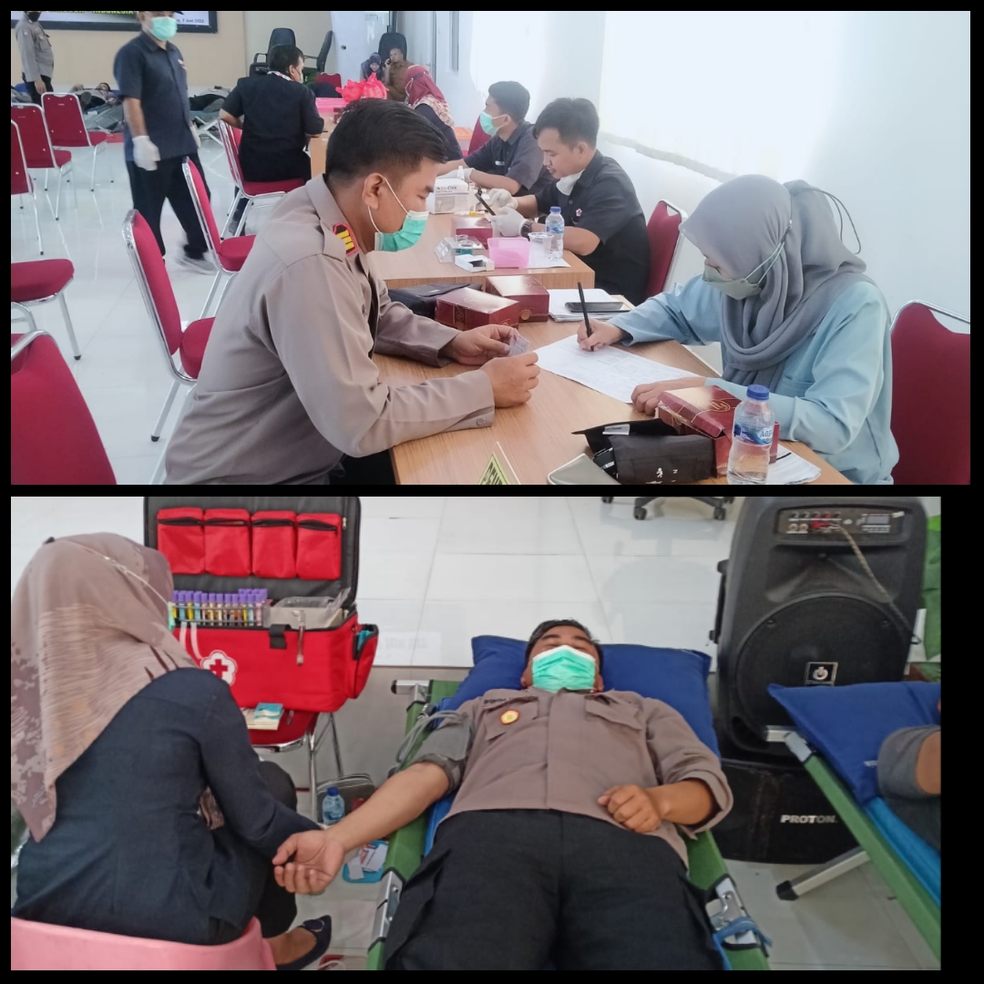 Baraknews polsek Rangkasbitung Polres Lebak–,Kapolsek Rangkasbitung Polres Lebak AKP Pipih Iwan Hermansyah.SH, mengikuti donor darah yang di selenggarakan oleh Jajaran Polres Lebak Polda Banten, menggandeng petugas dari PMI Kabupaten Lebak dan Sidokes Polik Linik Polres Lebak menggelar bakti sosial Kemanusiaan berupa donor darah,yang bertempat di Aula Polres Lebak.Selasa (07/06/2022)
