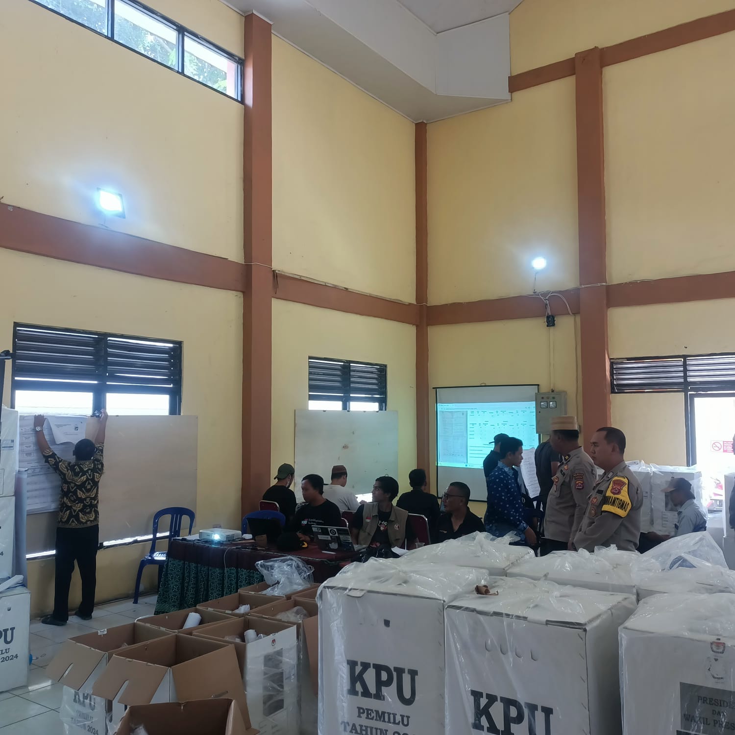 Kami menghimbau kepada masyarakat untuk tetap bersama-sama menjaga keamanan dan kondusifitas selama proses rekapitulasi suara di PPK, tutup Kapolsek