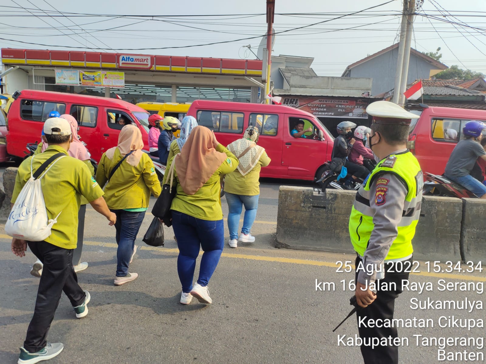 Baraknews Polresta Tangerang Polda Banten-Anggota Polsek Cikupa laksanakan Gatur Lalin Pagi dan Sore hari di Jl. Raya Jaya serang depan PT CINGLUH Kec. Cikupa Kab.Tangerang, Banten, Kamis, 25 Agustus 2022.