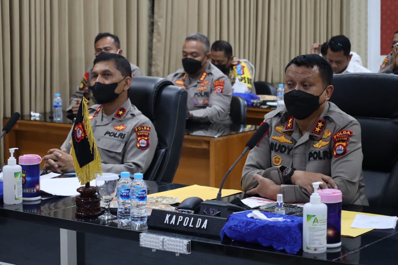 Baraknews Serang – Kapolda Banten Irjen Pol Prof. Dr. Rudy Hariyanto mengikuti Vicon yang membahas tentang kelangkaan bahan pangan khusunya minyak goreng, dipimpin oleh Kapolri Jendral Polisi Listiyo Sigit Prabowo, dilaksanakan di Ruang Vicon Polda Banten pada Senin (14/03).