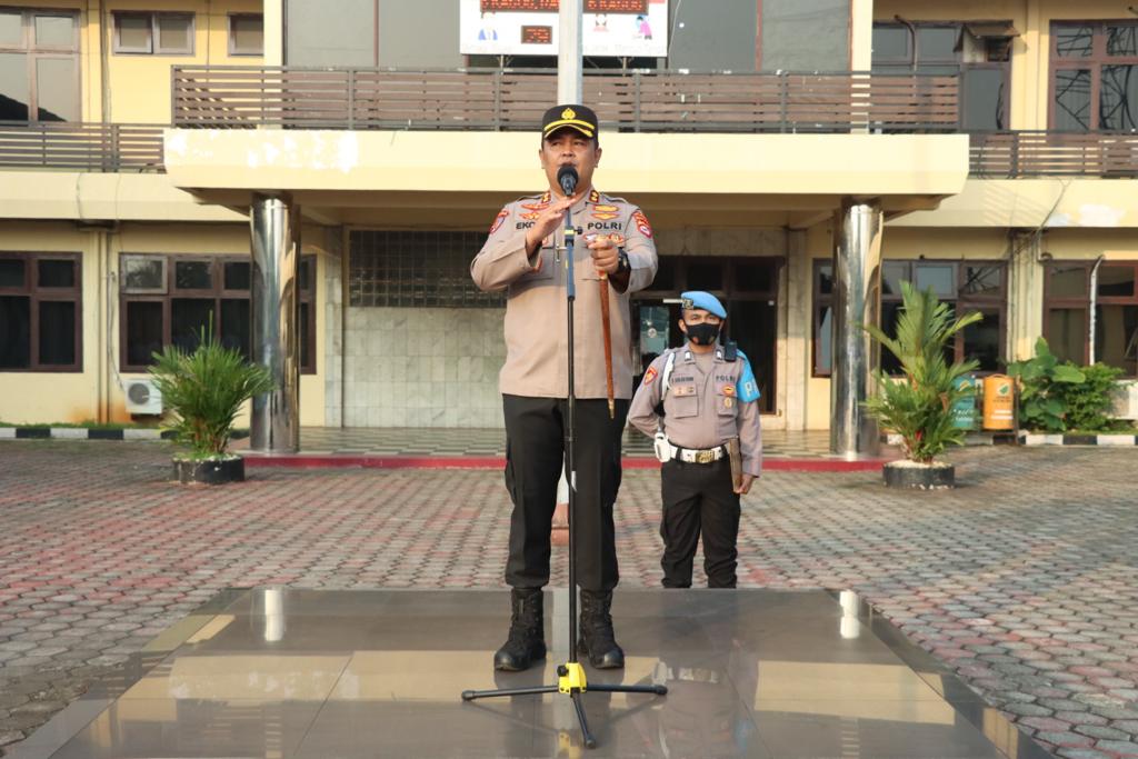 Saya akan terus mengajak rekan-rekan personel Polres Cilegon selalu bersyukur, tidak usah cemburu dengan keberhasilan teman teman yang lain, karena perlu diketahui seharusnya kita selalu bersyukur sudah berdinas di kota Cilegon ini yang apa apa ada, mumpung sudah ada di kota besar marilah Bekerja dengan baik dan bantu Masyarakat. Ujar AKBP Eko Tjahyo Untoro