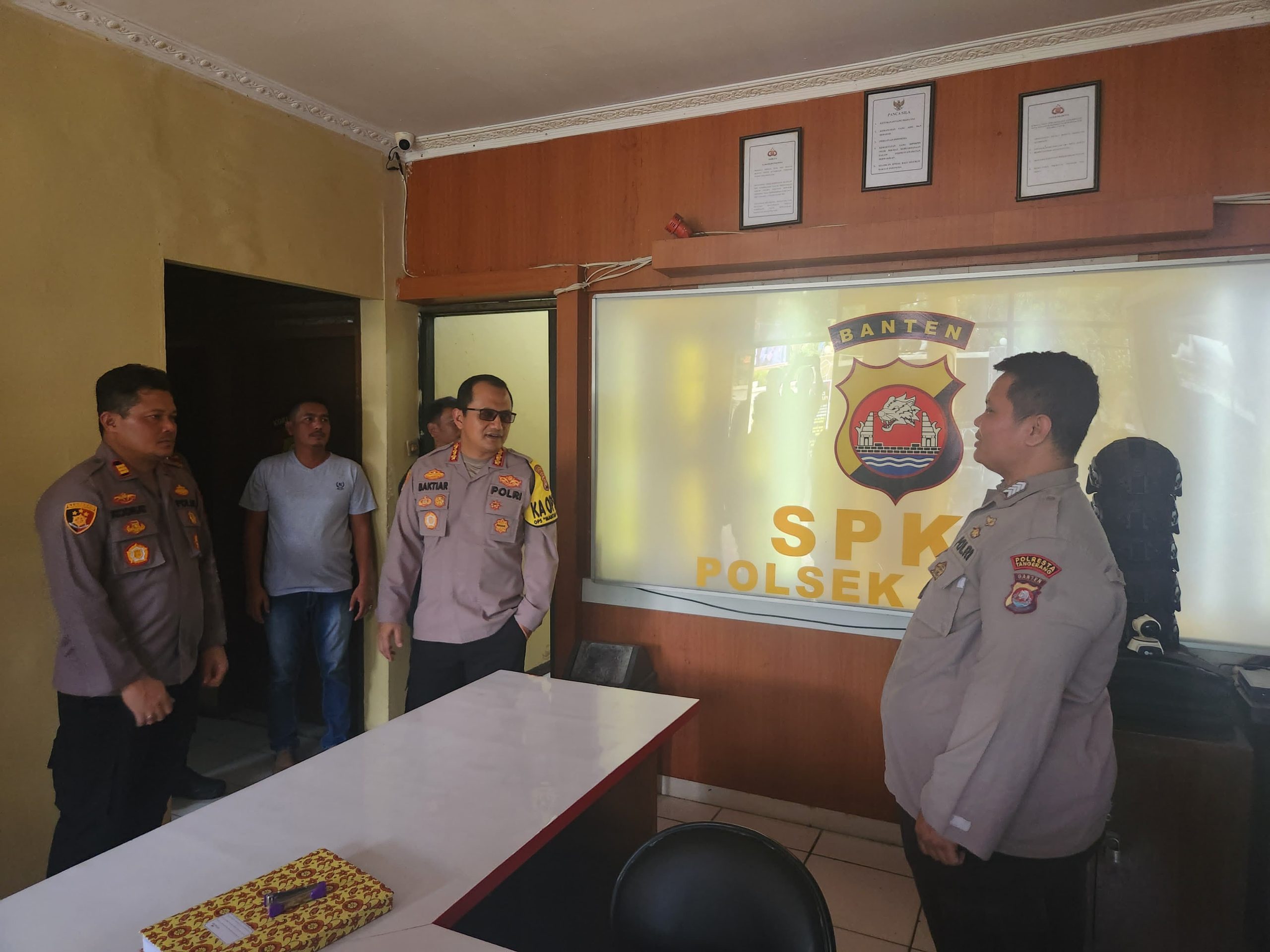 Tangerang– Kapolresta Tangerang Polda Banten, Kombes Pol Baktiar Joko Mujiono, melakukan pengecekan langsung ke Markas Komando (Mako) Polsek Mauk, Polresta Tangerang, pada Rabu siang (04/09). Kegiatan ini bertujuan untuk memastikan kesiapan personel serta kebersihan lingkungan kantor guna mendukung pelayanan prima kepada masyarakat.