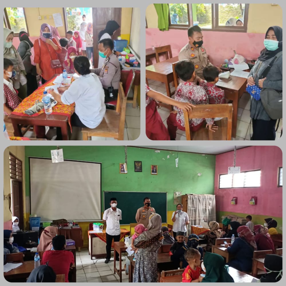 Baraknews|Lebak– Polsek Cibadak Polres Lebak Polda Banten beserta Formincam Kecamatan Cibadak sosialisasikan kepada orang tua/wali Murid usia 6 s.d 11 Tahun dilanjutkan dengan Vaksinasi covid-19 di SDN yang ada di Desa Kaduagung Timur Kecamatan Cibadak Lebak (26/01/2022)