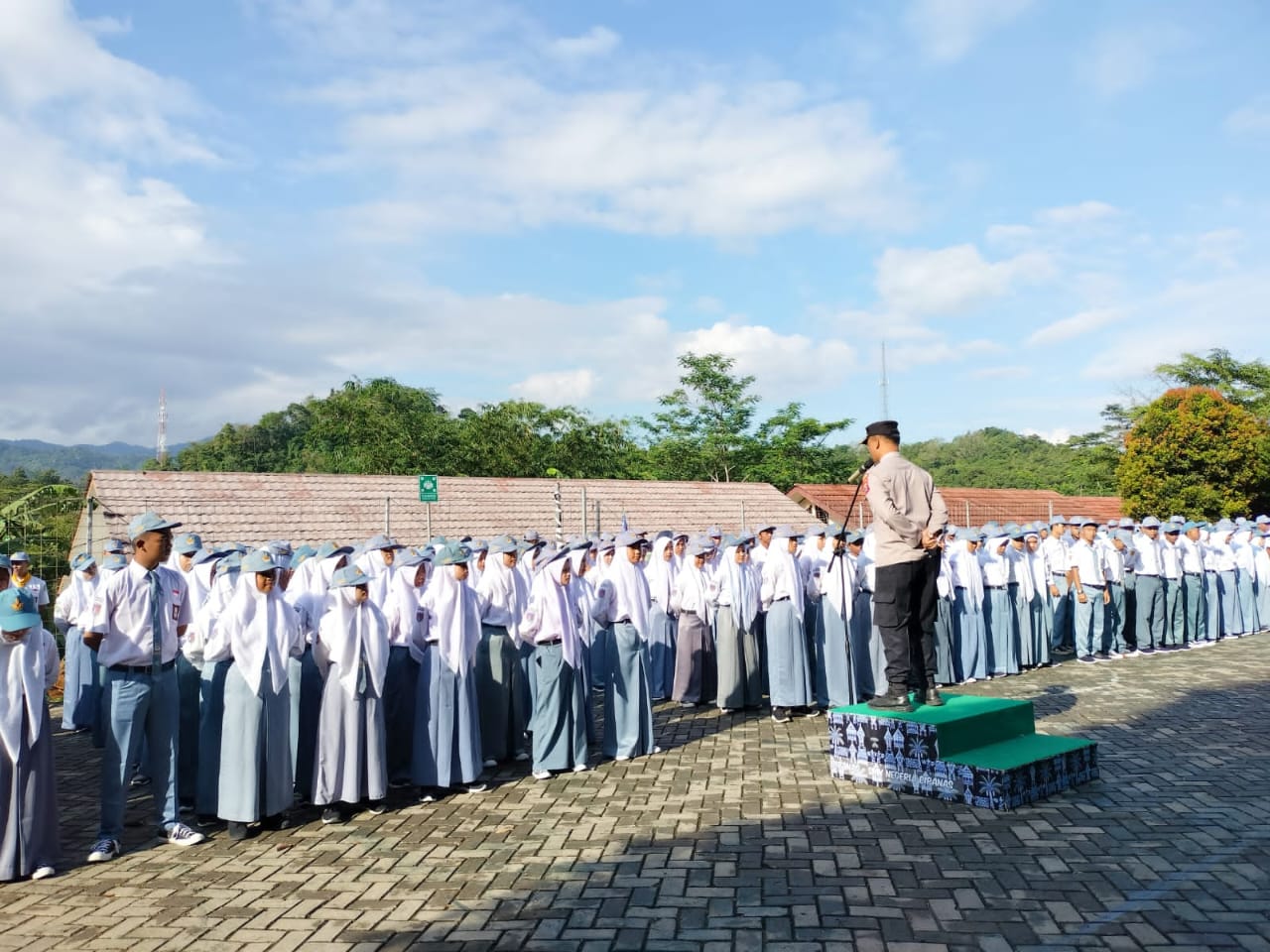 Senin,12 September 2022 di halaman SMKN 1 Cipanas pada saat melaksanakan kegiatan Upacara bendera dilanjutkan dengan Sosialisasi dan penyuluhan terhadap siswa/siswi SMKN 1 Cipanas yang diikuti sekitar 727 siswa-siswi,guna menciptakan kedisiplinan dalam pelaksanaan kegiatan di sekolah.