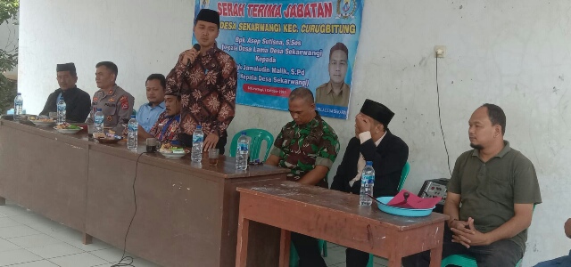 Menurut Kapolres Lebak Polda Banten AKBP Wiwin Setiawan, S.I.K,.M.H melalui Kapolsek Curugbitung AKP Dedi Suhandi mengatakan “Hari ini pengakhiran masa jabatan kepala desa sekarwangi, maka untuk mengisi kekosongan jabatan di desa Sekarwangi tadi saya hadiri serah terima jabatan kepala desa yang dipimpin camat Curugbitung.” ujarnya
