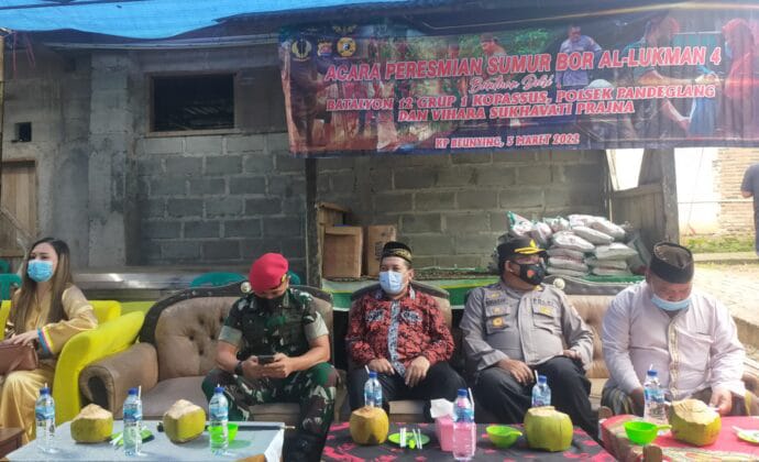 Tampak hadir dalam peresmian sumur bor tersebut, Komandan Batalyon 12 Grup 1 Kopasus, Kapolsek Pandeglang, Camat Kecamatan Majasari, Danramil 0101/Pandeglang, Tokoh Masyarakat dan Tokoh Agama, beserta tamu undangan