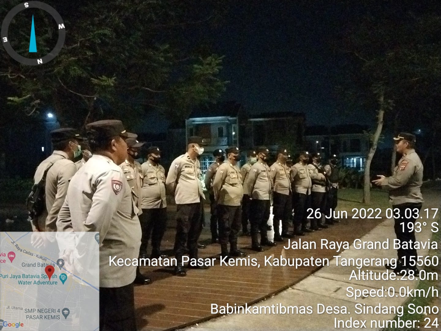 Baraknews Polsek Pasar kemis Polresta Tangerang Polda Banten -Untuk menciptakan wilayah hukum Polsek Pasar kemis Polresta Tangerang Polda Banten yang aman dan kondusif pada malam hari di akhir pekan, Kapolsek Pasar kemis Kompol Maryadi, SH S.IK, MH pimpin Apel malam dalam rangka giat KRYD gabungan piket fungsi yang dilaksanakan di Grand Batavia Kelurahan Sindang Sari Kecamatan Pasar kemis, pada Minggu, (26/06/2022)