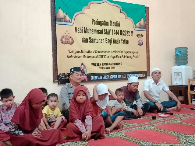 Kapolres Lebak Polda Banten AKBP Wiwin Setiawan.SIK.,MH, melalui Kapolsek Rangkasbitung.”Alhamdulillah hari ini kami bersama personel mengadakan Maulid Nabi besar Muhamad SAW, di Polsek Rangkasbitung, sekaligus menyantuni anak-anak Yatim yang ada di seputaran Polsek Rangkasbitung.