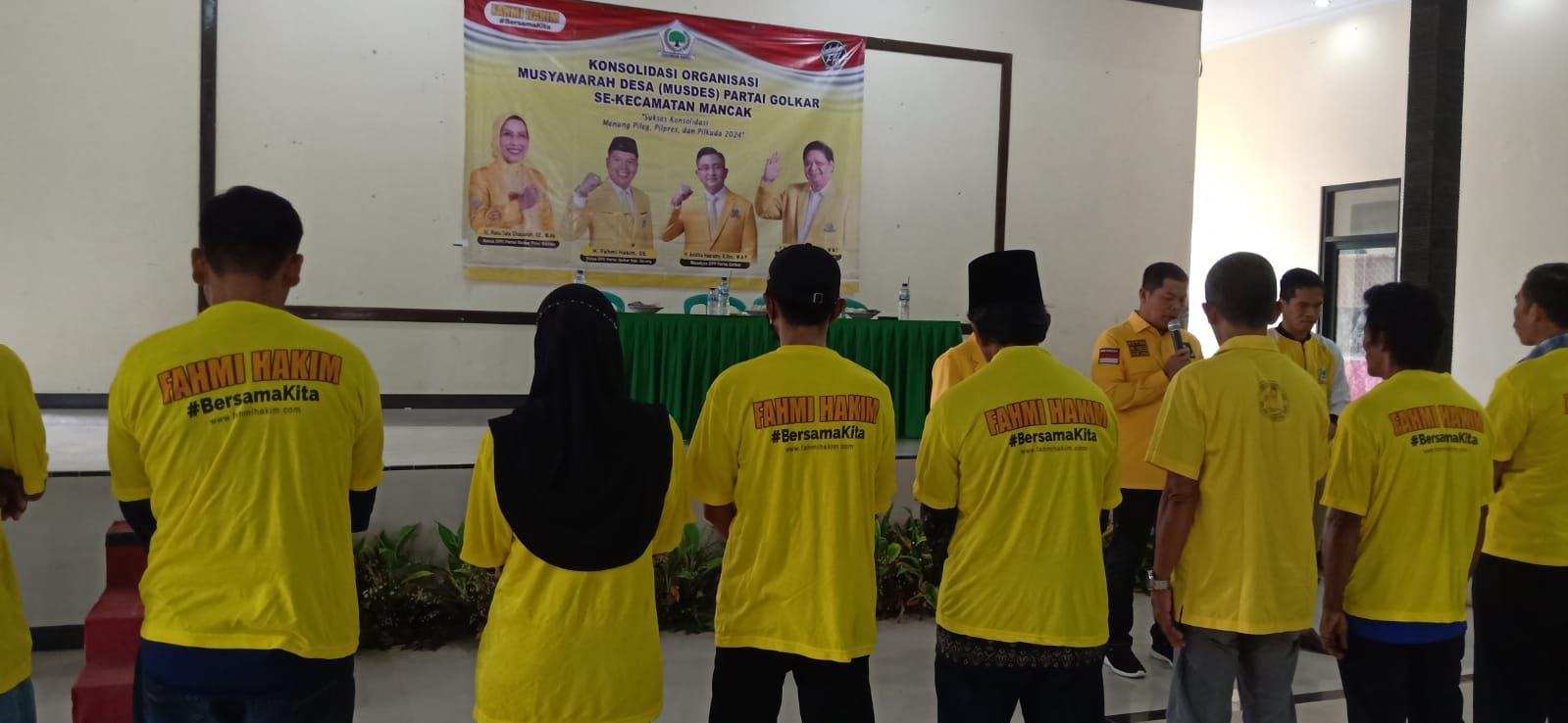 Diharapkan dalam kegiatan konsolidasi organisasi Musyawarah Desa (Musdes) Partai Golongan Karya (Golkar) Se – Kecamatan Mancak, mampu menyatukan visi dan misi seluruh jajaran Pengurus Partai Golkar sampai ke tingkat Kecamatan Mancak, sehingga tujuan utamanya yaitu mampu pemesebagai pemenang dalam kontestasi gelaran Pileg, Pilpres dan Pilkada 2024.