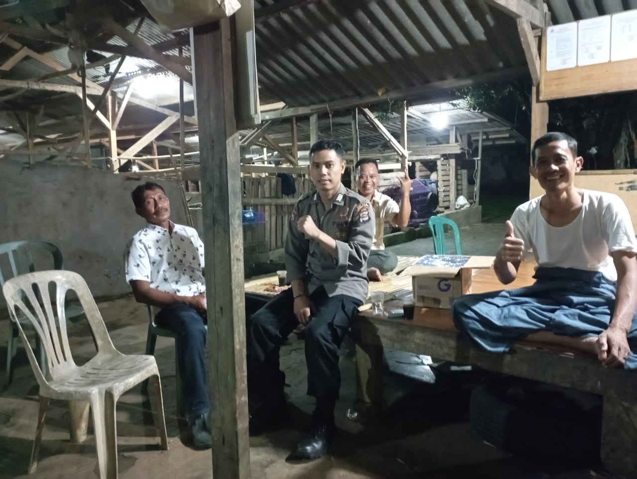 Baraknews Polsek Walantaka Polresya Serkot Polda Banten- Dalam kegiatan patroli dialogis di pos Kampling DDS Door to door Sytem yang di laksanakan oleh Bhabinkamtibmas kelurahan Pasuluhan di lingkungan Bojong Honje kelurahan Pasuluhan Kecamatan Walantaka Kota Serang.