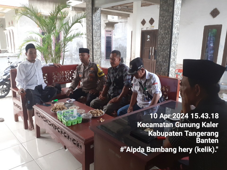 Polresta Tangerang-Dalam rangka mengimplementasikan Commander Wish Kapolda Banten yaitu Sowan Sesepuh, Anggota Polsek Kresek Aipda Bambang kunjungi Tokoh Masyarakat di Desa Gunung Kaler Kecamatan Gunung Kaler Kabupaten Tangerang, Rabu (10/04/2024)