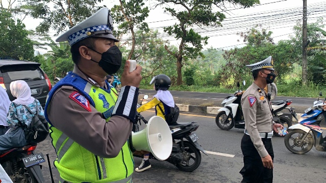 “Ada pengendara motor yang tidak memakai helm, kami kasih penjelasan. Jadi kami murni untuk teguran secara simpatik,” kata Try.