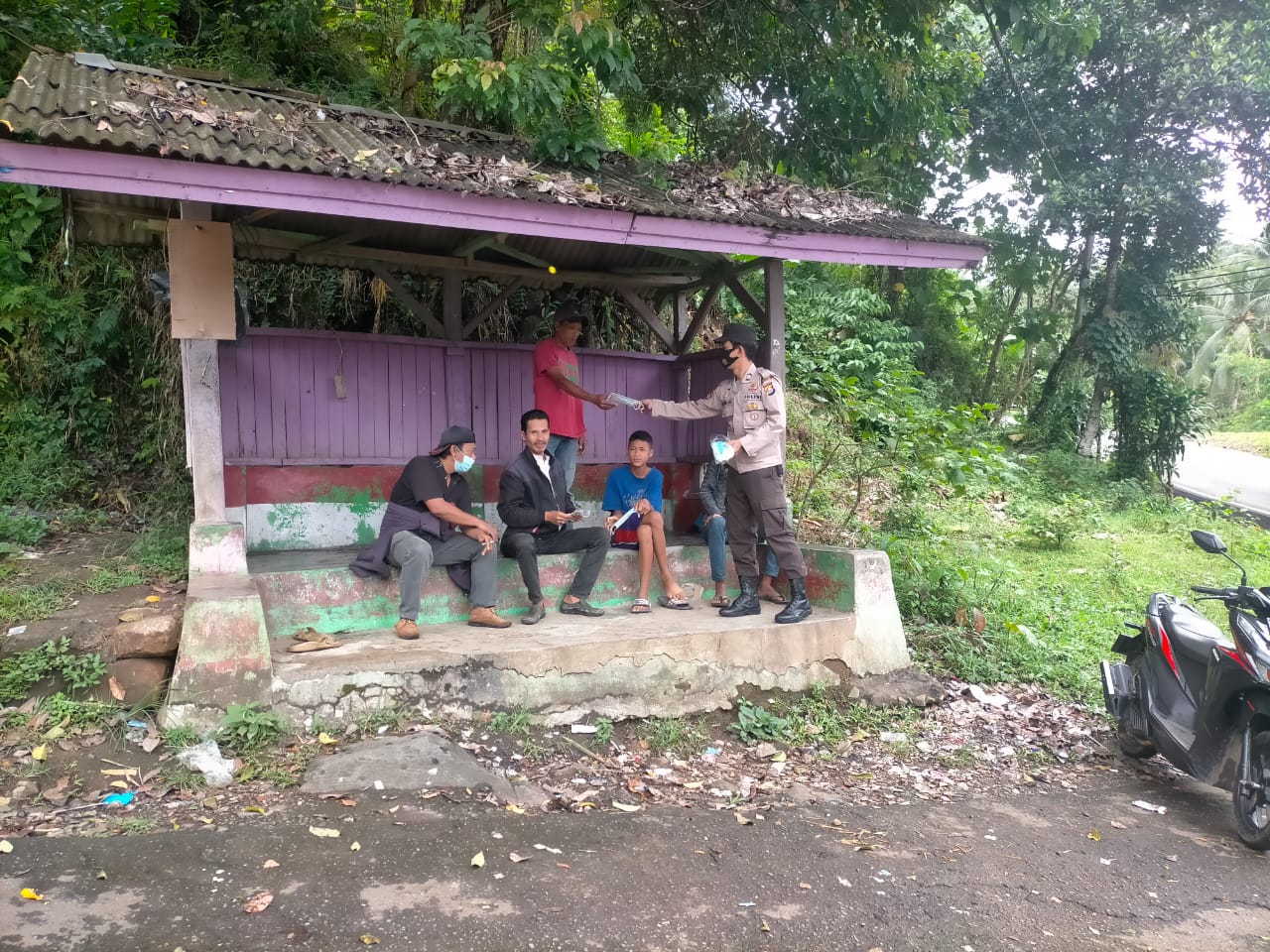 Baraknews pandeglang, banten,- Di tengah pandemi wabah Covid-19 yang belum selesai sampai saat ini, juga mencegah terjadinya penyebaran covid-19 varian Omicron di wilayah kecamatan Mandalawangi, Personil Polsek Mandalawangi Polres Pandeglang Polda Banten melakukan sambang, pembagian masker sekaligus berikan himbauan kepada masyarakat sekitar, pada Jumat (25/02/2022).