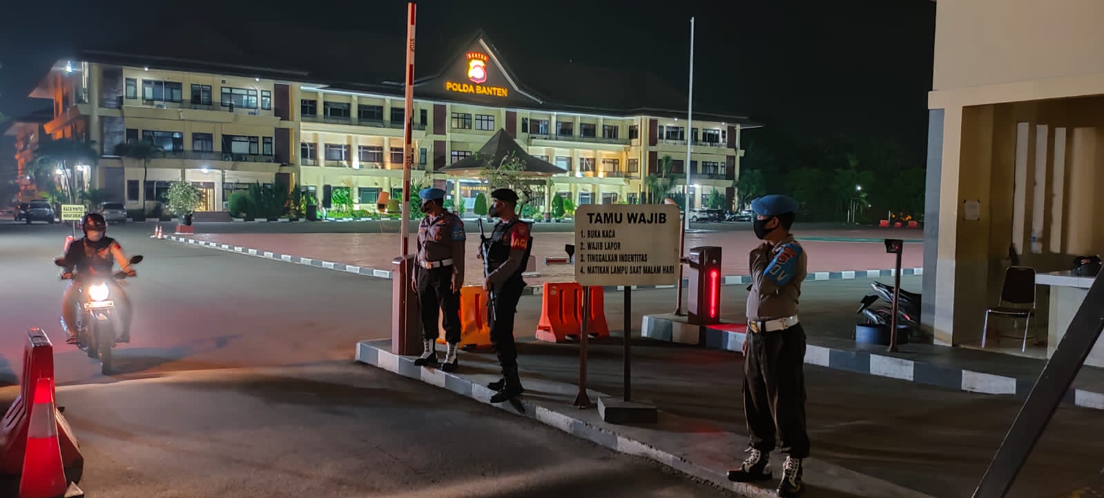 Kabid Propam Polda Banten Kombes Pol Yudho Hermanto menyampaikan untuk pengamanan adalah tanggung jawab dari Satuan Kerja Pelayanan Markas (Yanma) Polda Banten, khususnya pada malam hari yang bertugas menjaga kondusifitas keamanan di lingkungan Polda Banten. “Personel yang melaksanakan pengamanan bertugas dengan cara berjaga dipintu gerbang masuk Polda Banten, melaksanakan pemeriksaan ruangan-ruangan kerja di Polda Banten, melaksanakan patroli ke rumah dinas pejabat utama Polda Banten, kawasan parkir, gudang dan bangunan di kawasan komplek Polda Banten. Kegiatan tersebut harus dan wajib dilaksanakan guna terciptanya rasa aman, nyaman dan kondusif,” kata Yudho Hermanto.