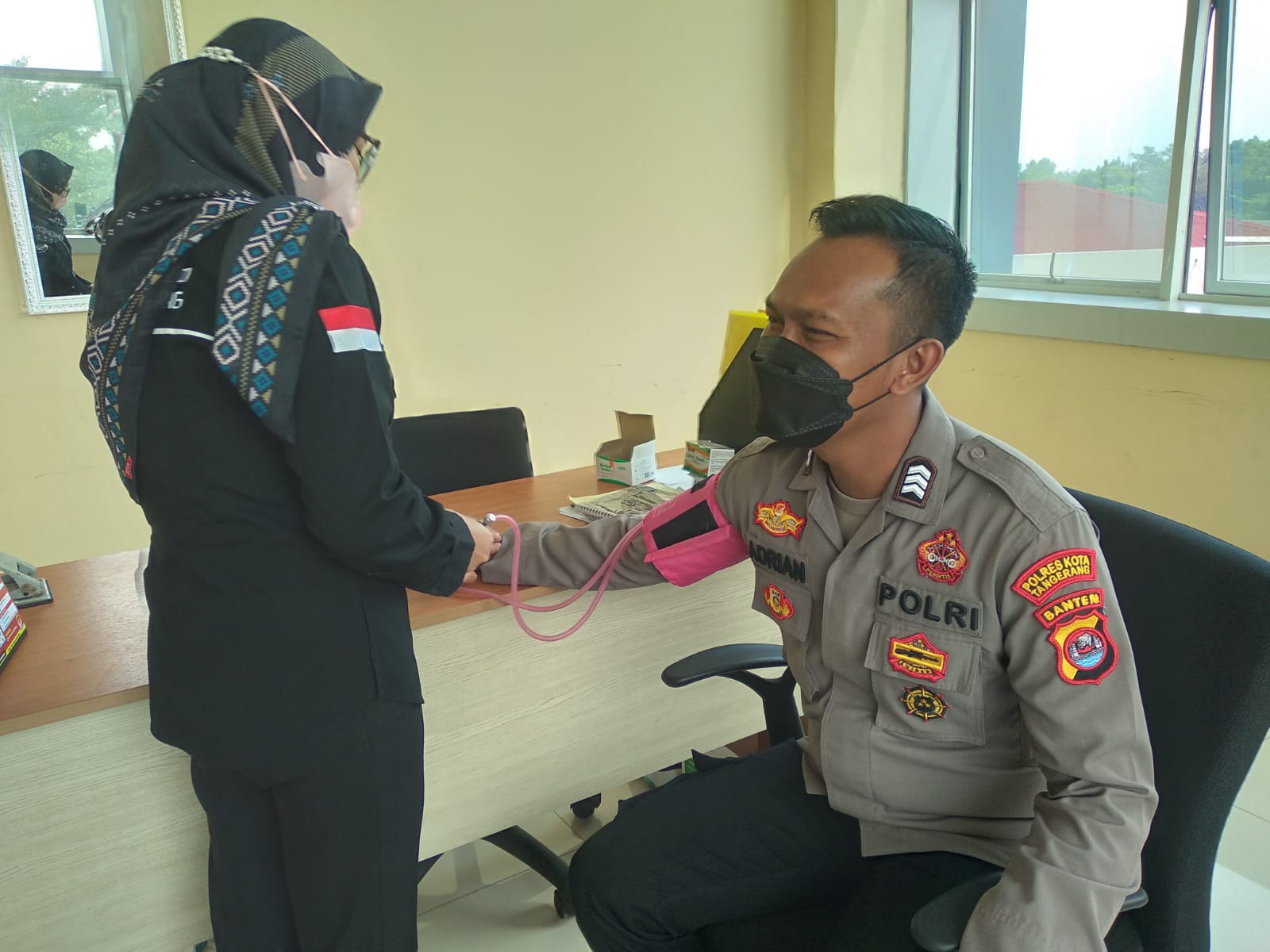 Adapun pemeriksaan yg dilakukan adalah Cek Tensi darah kepada Personel Polresta Tangerang. Pemeriksaan tersebut bertujuan untuk memastikan kondisi personel Polresta Tangerang dalam keadaan Fit sehingga dalam melaksanakan tugas dapat menyelesaikan tugas dengan baik.