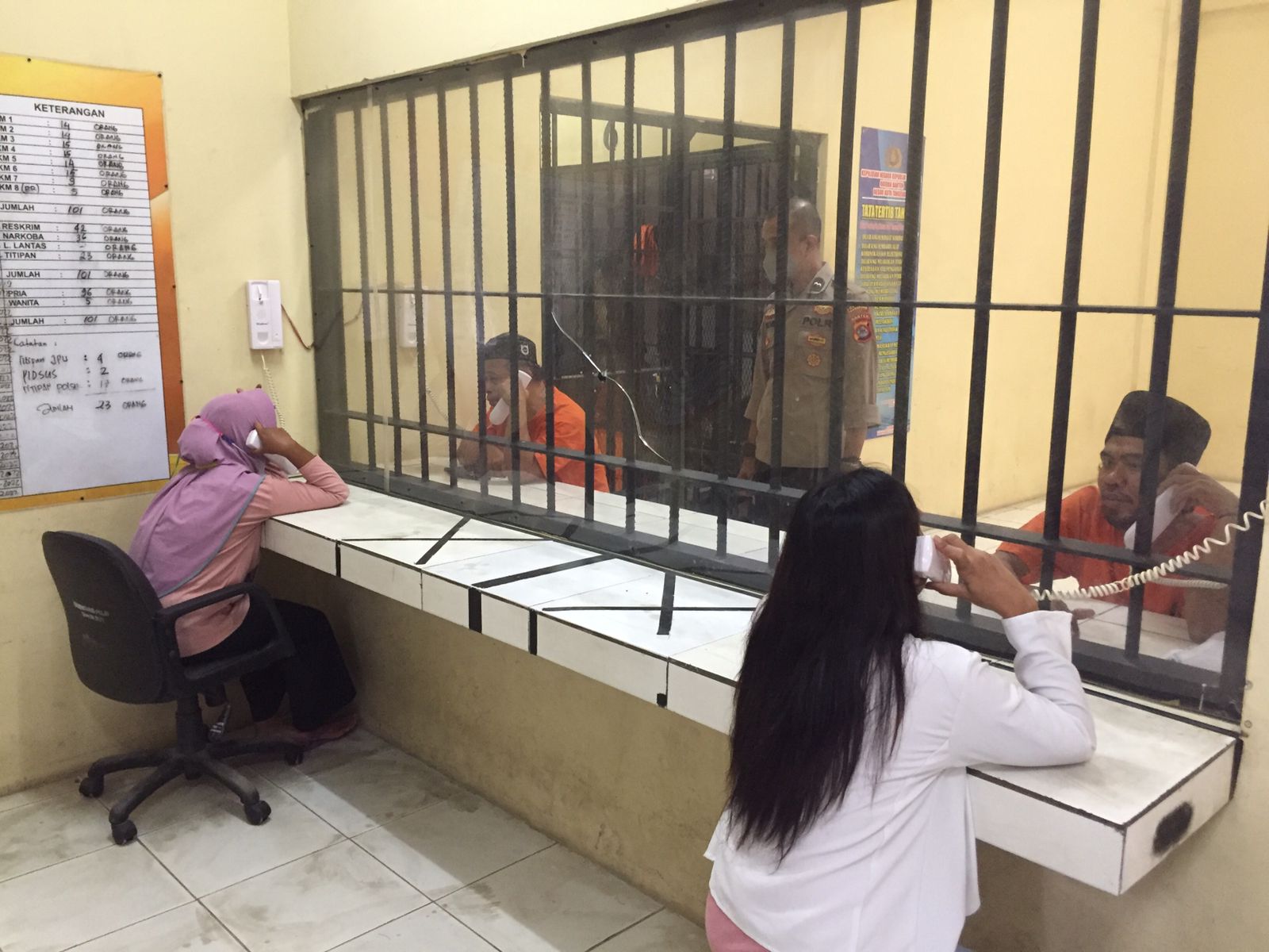 “Meski disekat mereka tetap bisa berkomunikasi dengan intercom yang kami sediakan disini, sehingga tetap memudahkan Komunikasi pengunjung yang akan membesuk keluarganya di ruang tahanan Polresta tangerang”. Ujarnya.