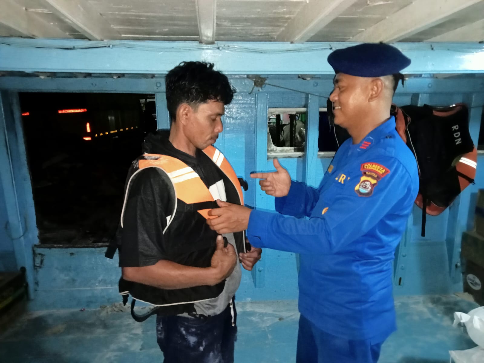 Anggota Satpolairud juga menyampaikan Himbauan untuk keselamatan berlayar agar memperhatikan kelengkapan keselamatan di laut agar tidak terjadi hal hal yang tidak kita inginkan, secepat mungkin melaporkan apabila menemukan hal-hal yang mencurigakan kepada petugas Kepolisian terdekat.