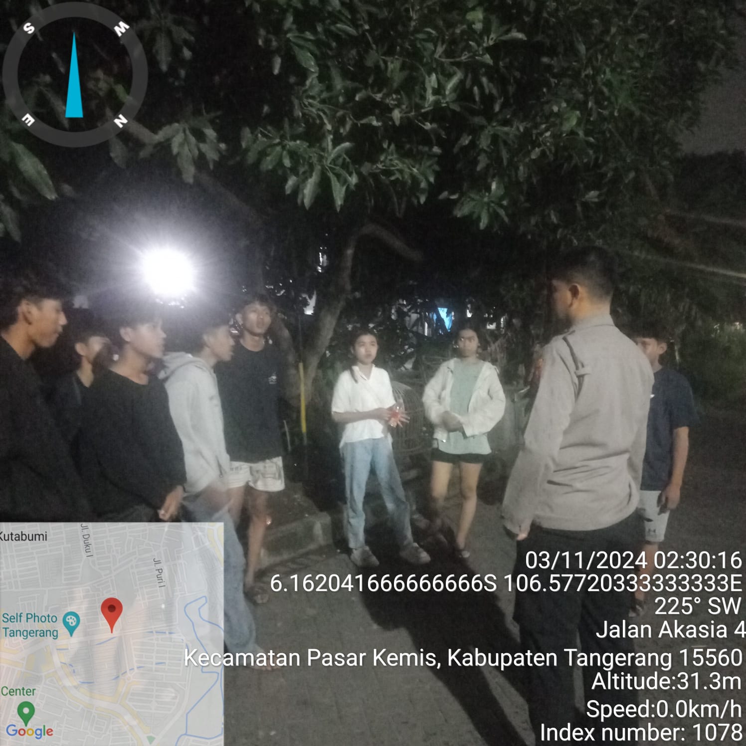 Aipda Dwi Mulyono Ps Kapospol Regency Polsek Pasar Kemis didampingi Bpk. Ronald Banpol melaksanakan patroli menyasar ke Bunderan Patung Biru Jln Perum Permata Regency II Desa Gelam kec.pasar kemis kab. Tangerang