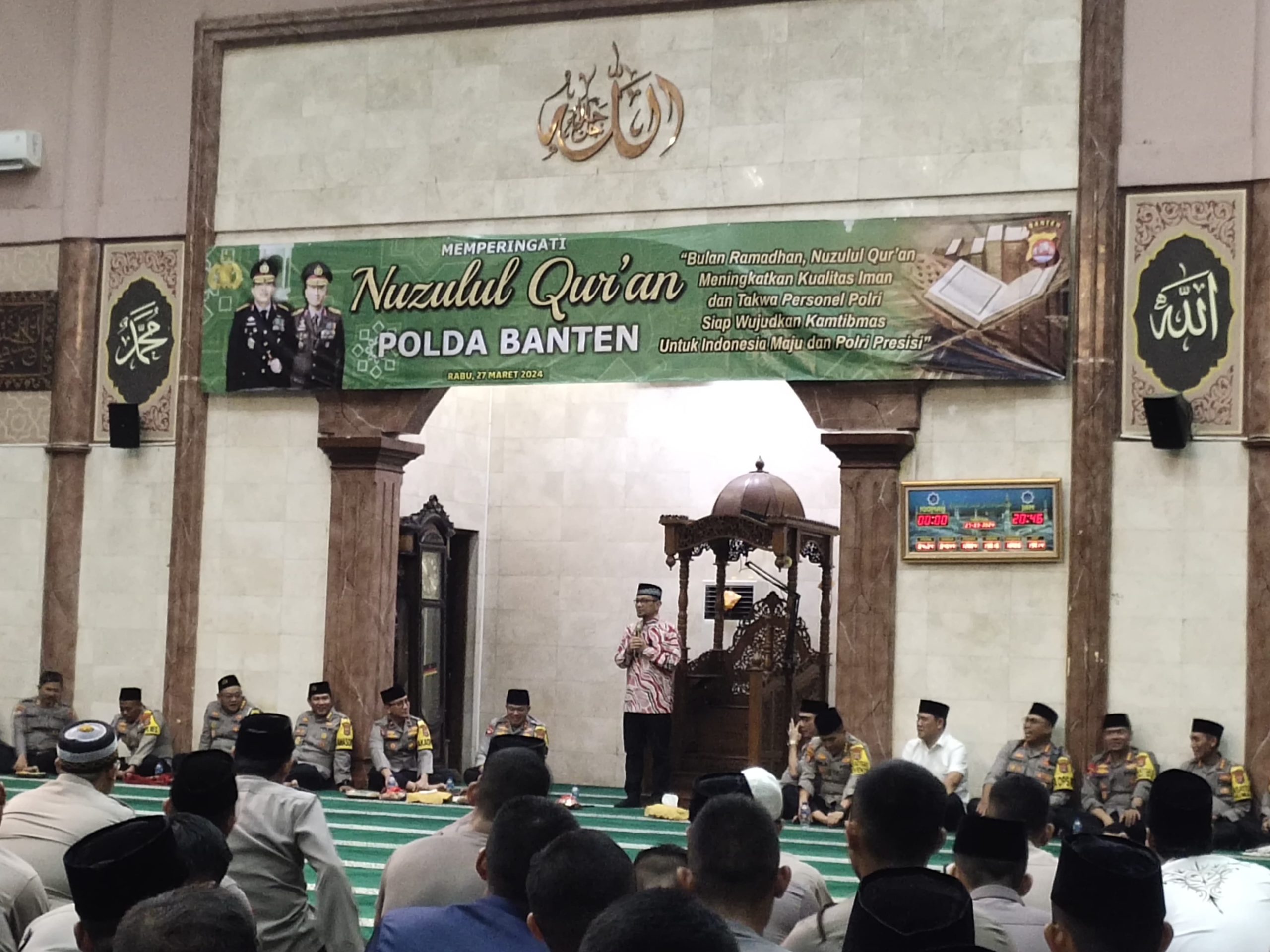 Serang – Dalam rangka memperingati Nuzulul Qur’an, Kapolda Banten menggelar buka puasa dan sholat tarawih bersama yang bertempat di Polda Banten pada Rabu (27/03).