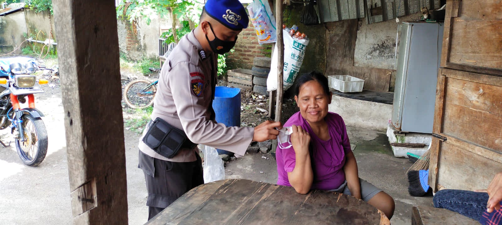 Adapun kegiatan pembagian masker ini dilakukan oleh Bripka Sandi Rado dan Bripka Dedi pada Rabu, (23/02).