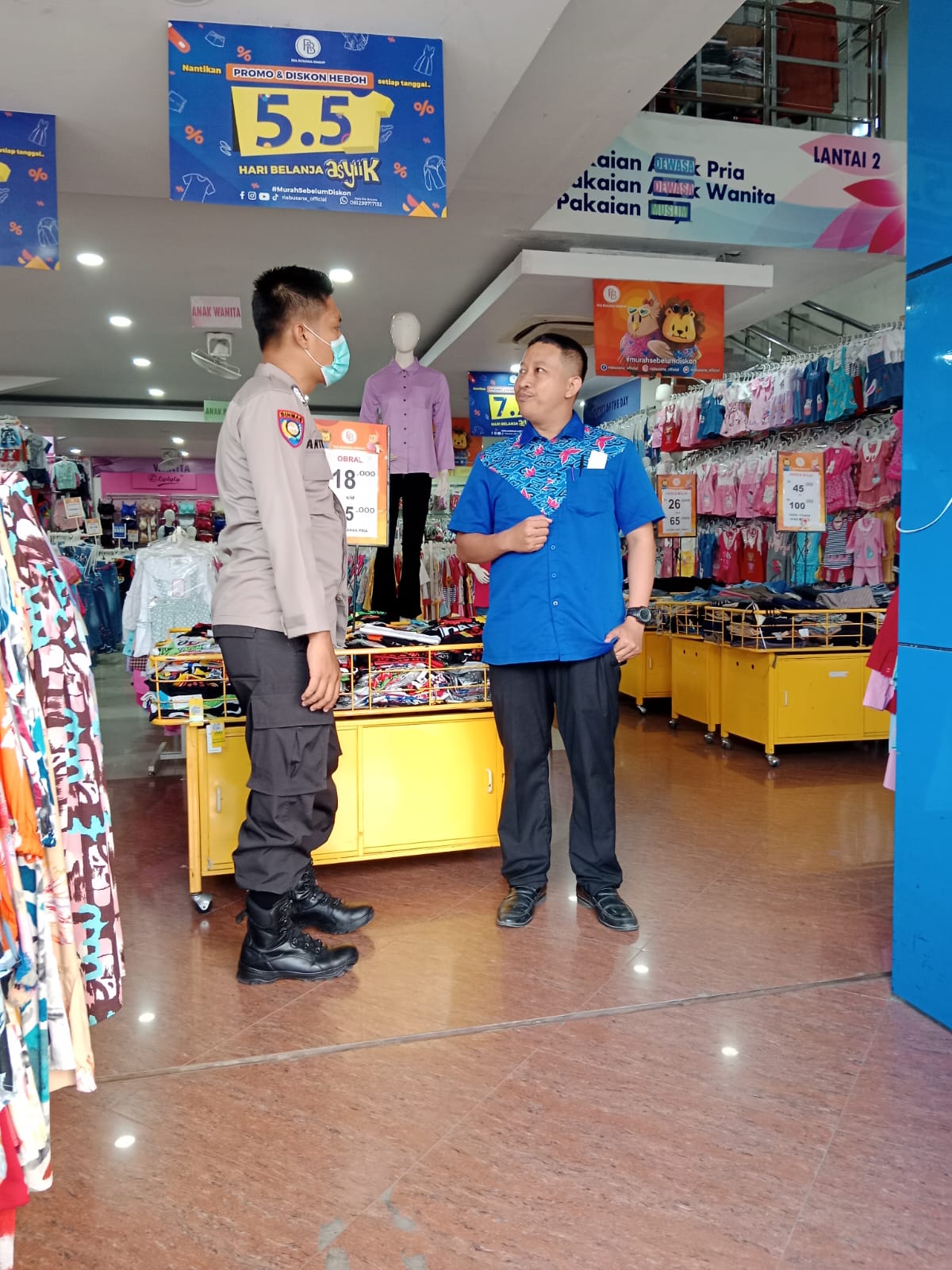 Baraknews Polsek Purwakarta Polres Cilegon Polda Banten- Personil Bhabinkamtibmas Polsek Purwakarta Polres Cilegon BRIPKA Anto Maulana menyambangi Toki pakaian Ria Busa dan berkoordinasi dengan Petugas Keamanan agar selalu waspada Tetang keamanan di Lingkungan.Selasa(19-07-2022).