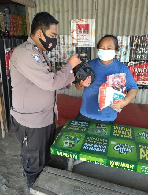 Baraknews Polsek Kramatwatu Polresta Serkot | Personil Polsek bhabinkamtibmas Kramatwatu memberikan sedikit rizkinya berbagi kepada warga masyrakat desa binaannya yang kurang mampu Desa Serdang kec.kramatwatu kab.serang Wilayah Hukum Polsek Kramatwatu Polresta Serang Kota Polda Banten, Jumat (07/10/2022).