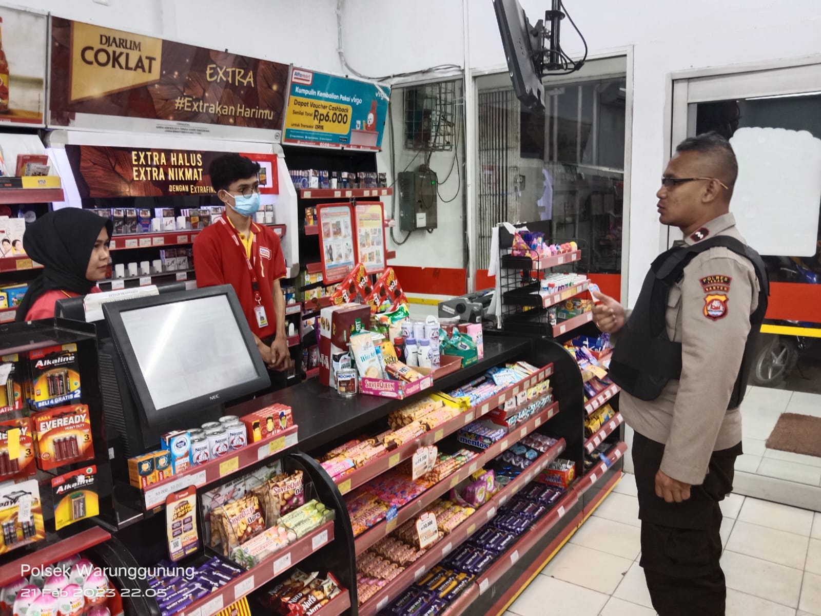 Baraknews Polres LEBAK,- Untuk menekan Angka tindak aksi kejahatan, Personil Polsek Warunggunung Polres Lebak AIPDA E.Satria dan BRIPKA Milwan Anggaliana, melaksanakan giat Patroli kepertokoan waralaba seperti alfamart dan infomart di wilayah hukum Polsek Warunggunung. Selasa malam 21 Februari 2023.