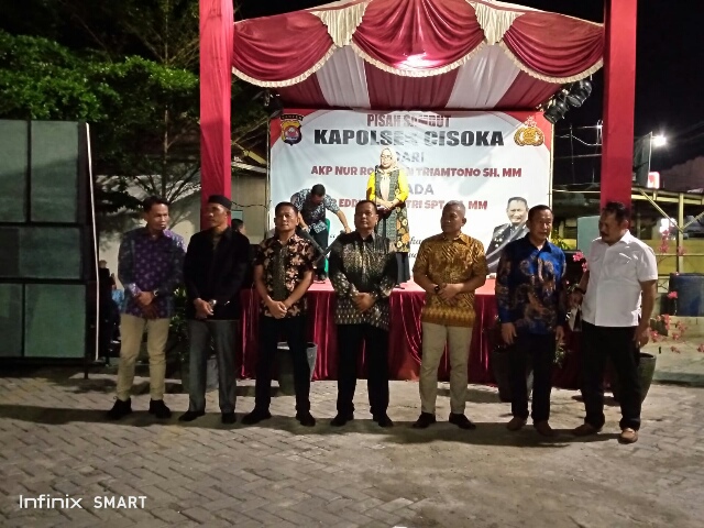 Acara pertama pembukaan doa dan acara kedua sambutan dari Anggota Polsek Cisoka yang di wakilkan oleh Kapospol Sumur Bandung IPTU Eka Karma, mengucapkan selamat bertugas kepada Kapolsek yang lama AKP. Nurrohman Triamtono.SH.MM, di tempat yang baru di Polresta Tangerang, kepada Kapolsek yang lama atas nama rekan rekan lainya mengucapkan terima kasih atas bimbingan serta arahan kepada kami selaku anggota Polsek Cisoka yang mana selama memimpin kami banyak sekali ilmu ilmu yang didapat serta memberikan perubahan perubahan di polsek Cisoka diantaranya adalah ikut memberikan status kepemilikan tanah menjadi milik sah Polsek Cisoka setelah melalui proses yang panjang.