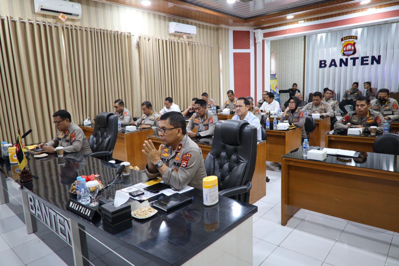 Turut hadir dalam kegiatan ini Wakapolda Banten Brigjen Pol Drs. Ery Nursatari bersama Pejabat Utama Polda Banten dan Kapolres jajaran yang mengikuti secara virtual.