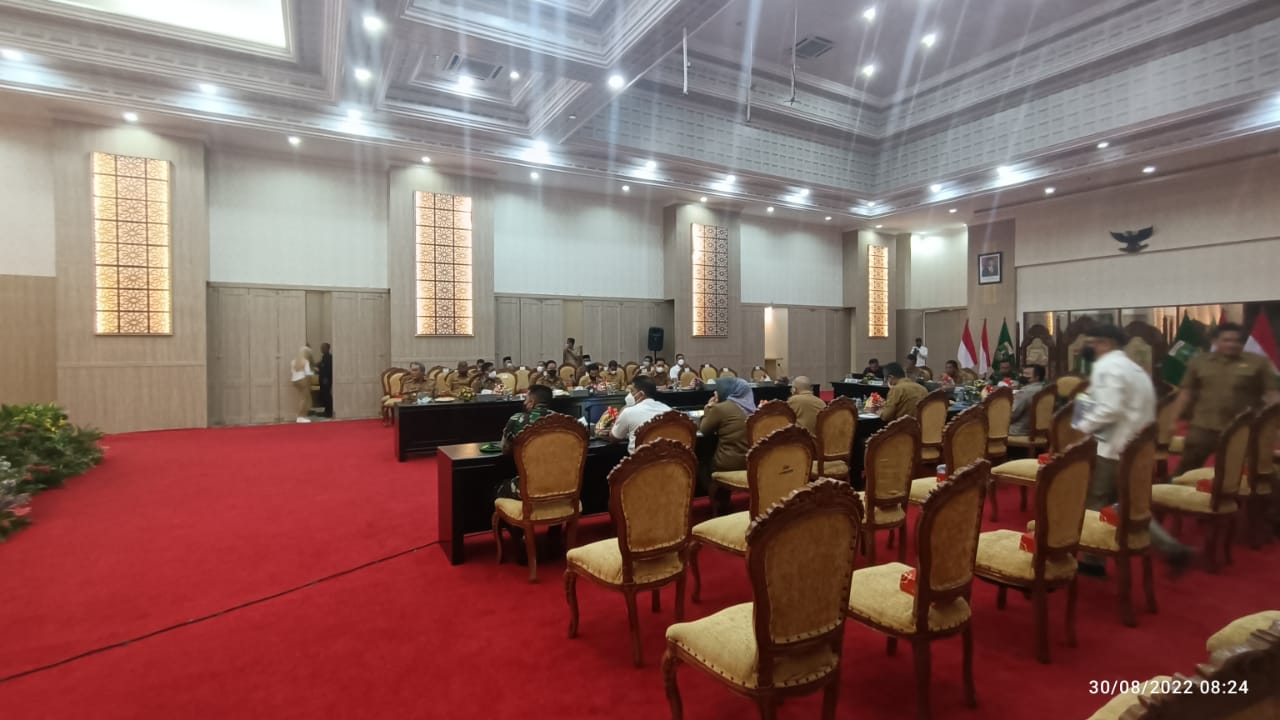 Baraknews Polda Banten- Polda Banten ikuti Zoom Metting rapat koordinasi nasional tentang sinkronisasi program pengendalian inflasi pimpinan Menteri Koordinator Bidang Kemaritiman dan Investasi (Menko Marves) dan Menteri Dalam Negeri yang dilaksanakan di Pendopo Gubernur Banten pada Selasa (30/08).