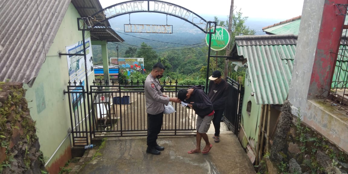 Baraknews Cadasari,Pandeglang– Akhir pekan Wisata kampung domba menjadi salah satu pilihan tempat bermain bagi para pengunjung, Ka SPK Polsek Cadasari Aipda Ayis mustofa beserta Bhabinkamtibmas kunjungi lokasi tersebut untuk kontrol sekaligus bagikan masker kepada para pengunjung yang tidak menerapkan prokes pada minggu (13/03/2022).