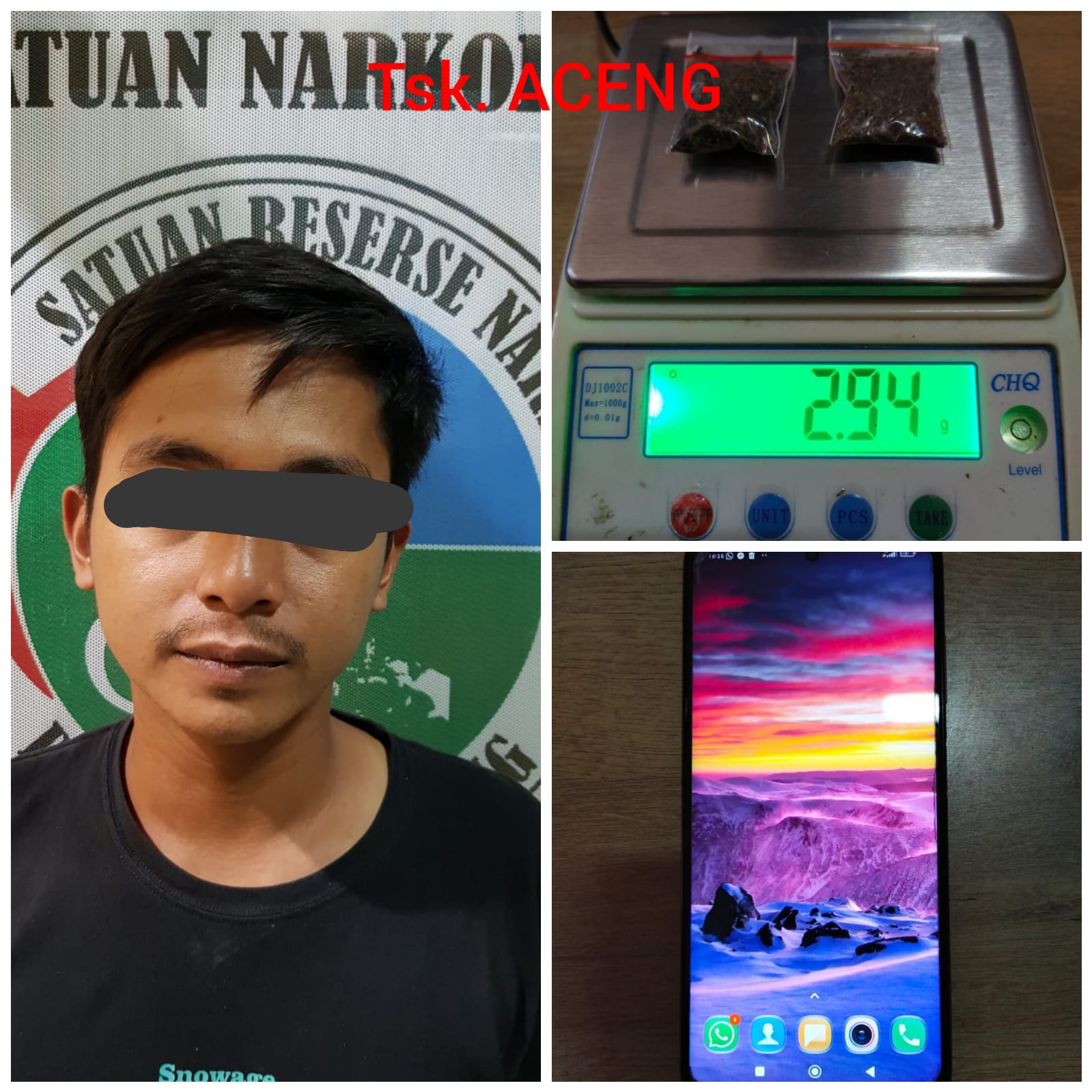 Ilman mengatakan, pada hari Sabtu (6/8) pihaknya berpura-pura menjadi pembeli kepada pelaku. Tempat yang disepakati untuk bertransaksi adalah di Villa Arista Kecamatan Carita Kabupaten Pandeglang dan berhasil mengamankan A (30) dan barang bukti berupa 2 Bungkus Plastik bening berisikan narkotika jenis ganja, dengan Berat Bruto 2,94 gr dan 1 unit Handphone.