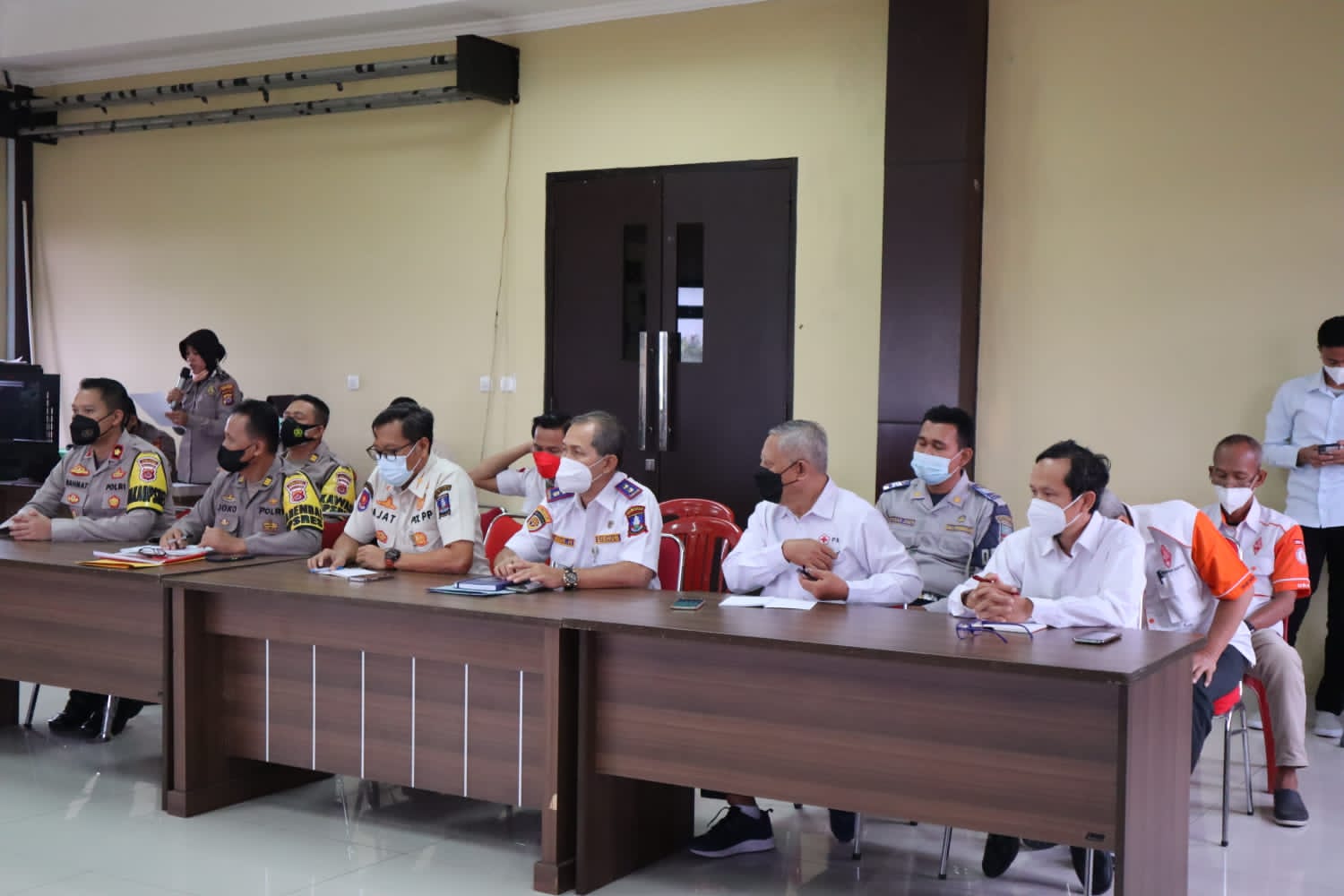 Kegiatan ini dipimpin Kapolres Serang AKBP Yudha Satria, SH., S.Ik dan dihadiri oleh Asda II Kab. Serang, Pasi Ops Kodim 0602/Serang, Kasat Pol PP Kab. Serang, Ketua Orari Kab. Serang, Wakil Ketua PMI Kab. Serang, Dishub Kab. Serang, BPBD Kab. Serang dan para Pejabat utama serta Kapolsek Jajaran Polres Serang.