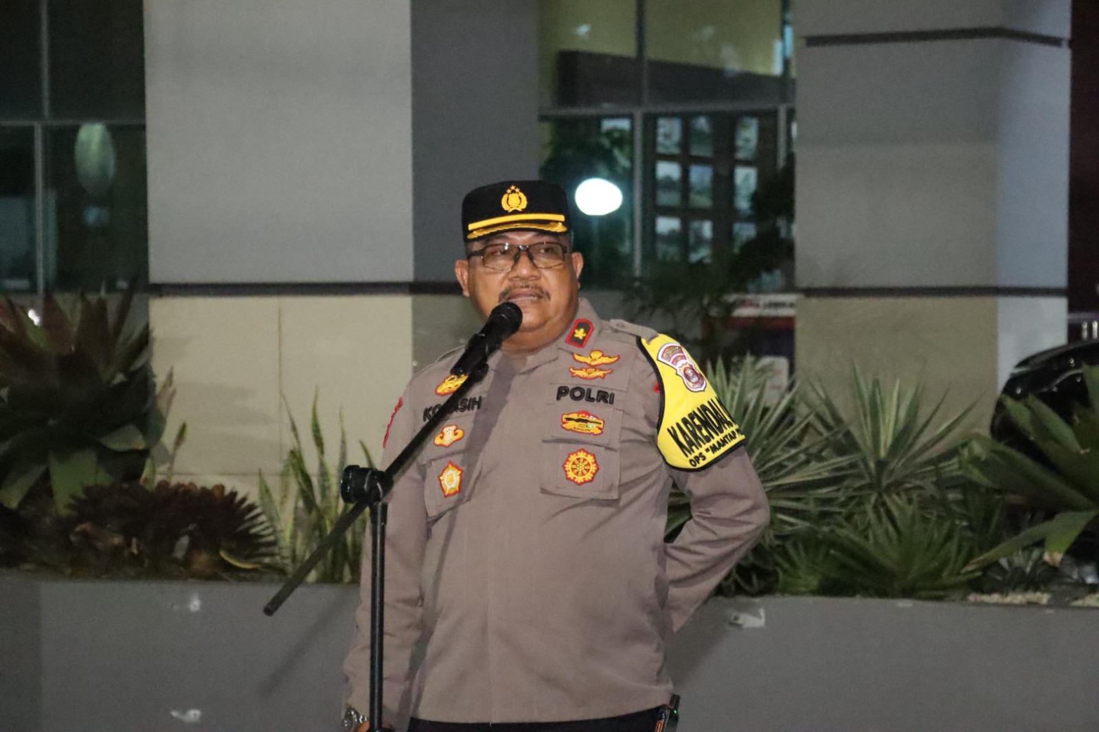 TANGERANG — Kepala Bagian Operasi (Kabagops) Polresta Tangerang Polda Banten, Komisaris Polisi (Kompol) Kosasih, memimpin apel malam yang bertujuan untuk mengantisipasi potensi gangguan keamanan dan ketertiban masyarakat (kamtibmas) serta mengawasi kegiatan masyarakat di wilayah hukum Polresta Tangerang. Apel yang dilaksanakan di halaman Mapolresta Tangerang ini merupakan bagian dari upaya rutin kepolisian untuk menjaga keamanan dan ketertiban di wilayah tersebut.