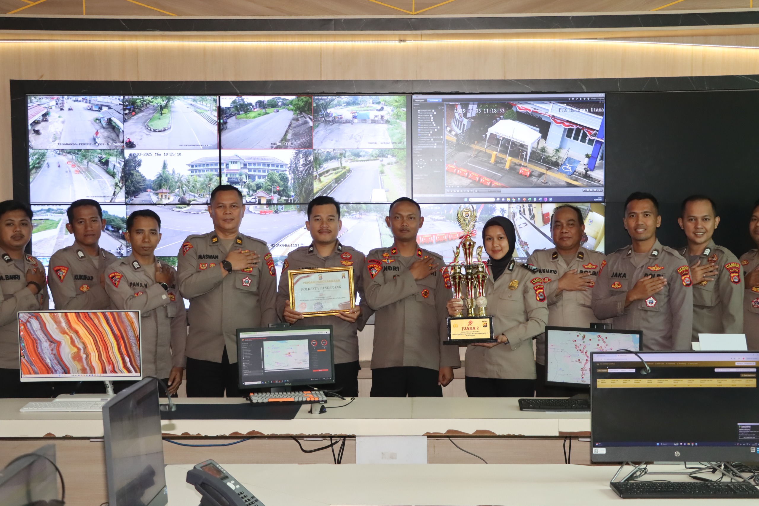 TANGERANG – Dalam ajang Lomba Pelayanan Polisi 110 tingkat Polda Banten, Polresta Tangerang berhasil meraih prestasi membanggakan dengan meraih posisi Juara Kedua. Penghargaan tersebut diberikan langsung oleh Karoops Polda Banten Kombes Pol. Yofie Girianto Putro, S.I.K., M.H., sebagai bentuk apresiasi atas komitmen pelayanan publik yang cepat, responsif, dan humanis.